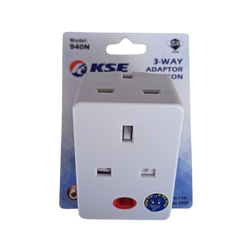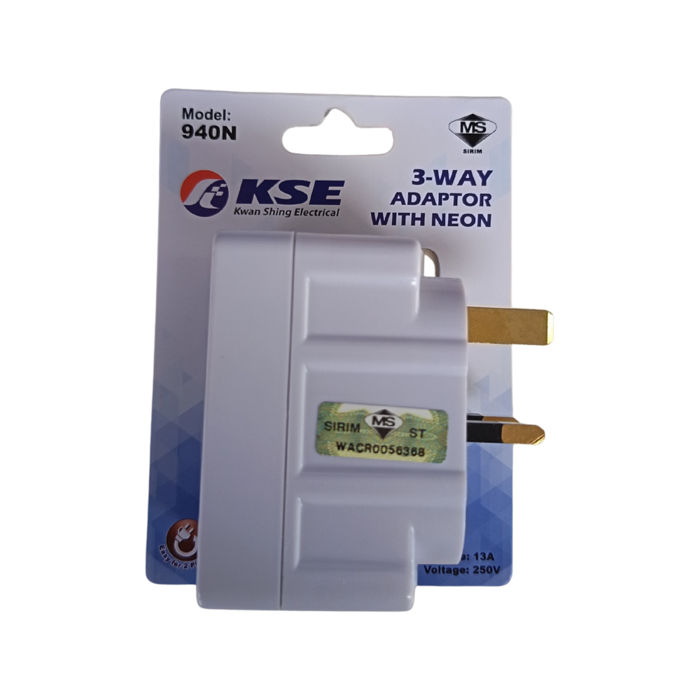 The ProSMK KSE 940N is a heavy-duty 3-way adaptor designed for safety and convenience in Malaysian households and offices. Its primary purpose is to convert a single 13A wall socket into three separate outlets while maintaining high safety standards verified by SIRIM.