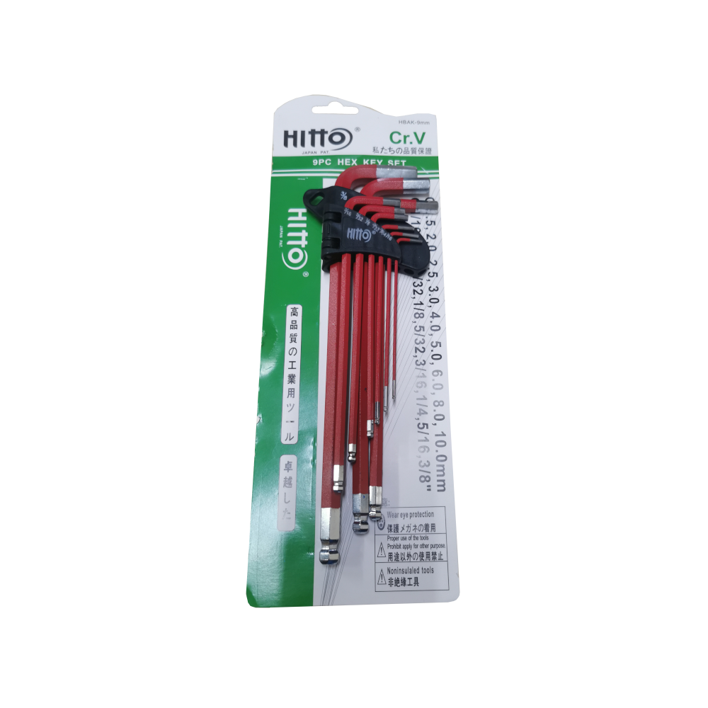 Product Type: 9-Piece Extra Long Ball Point Hex Key Set (Allen Wrenches)
