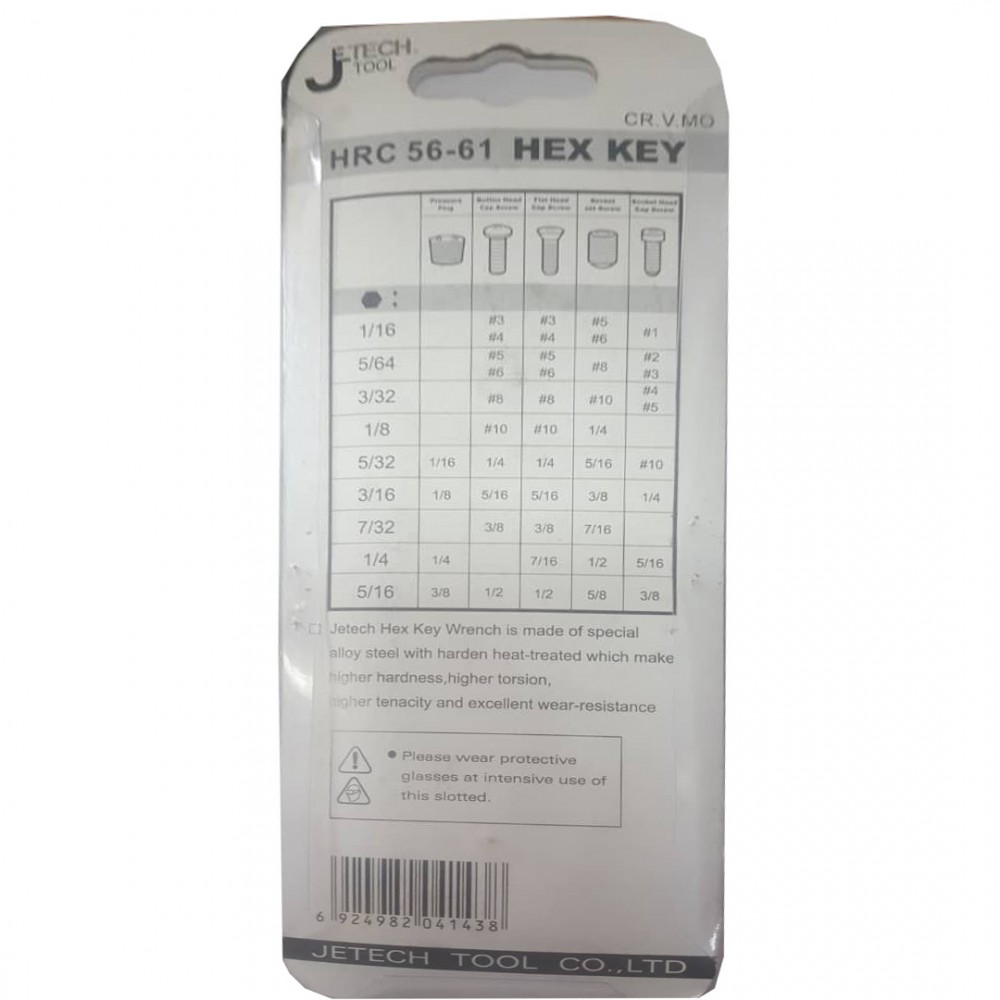 The set contains 9 imperial (inch) sized hex keys. The following sizes are listed on the packaging: