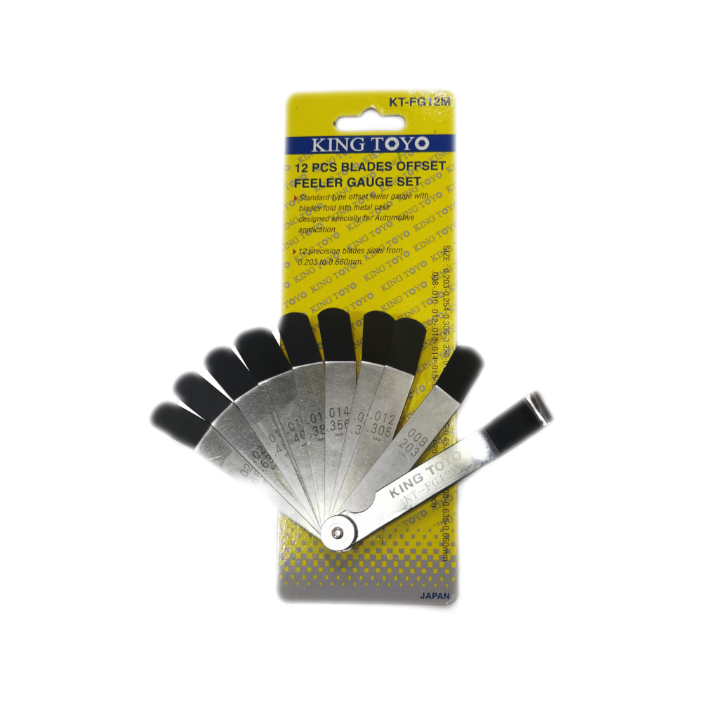 - Standard type offset feeler gauge with blades fold into metal case designed specially for automotive application.