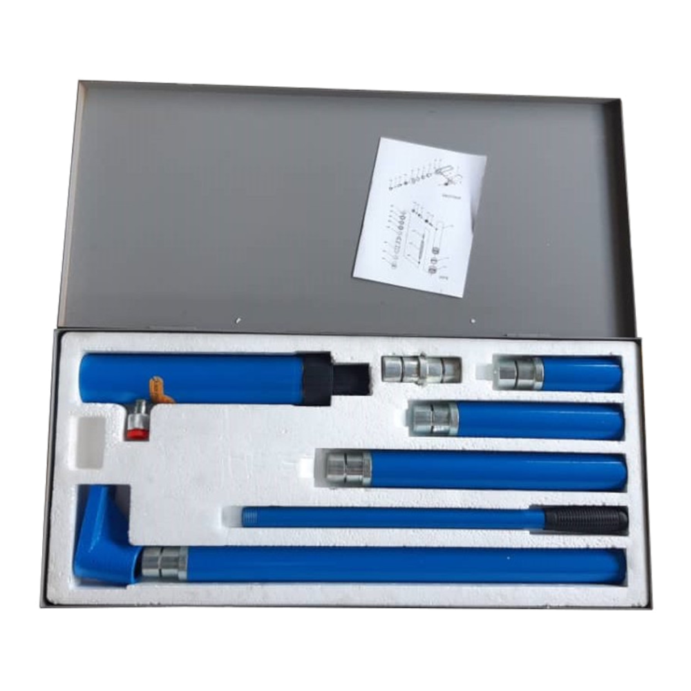 | Components | Hydraulic pump, hydraulic hose, ram, various extension tubes, connectors, wedges, and attachments. |
