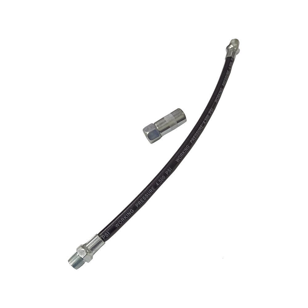 Construction: Features robust construction with appropriate fittings (one male threaded end and one female end for the coupler) to prevent leaks and ensure a secure connection to the grease gun body.