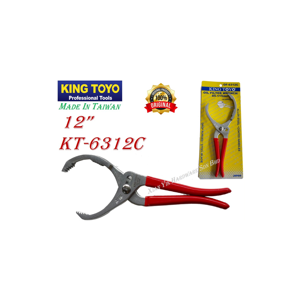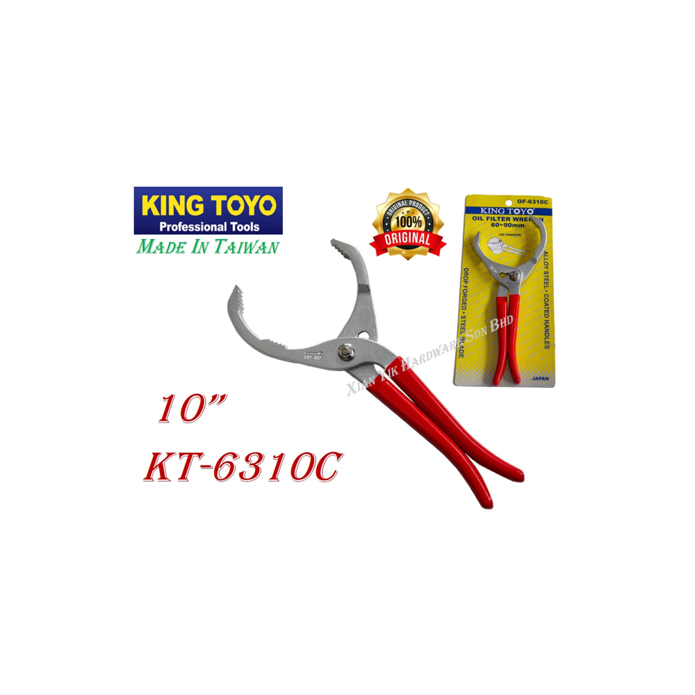 This tool is a specialized plier-style wrench designed for the easy removal and installation of oil filters. It is part of the KINGTOYO Professional Tools line, manufactured in Taiwan.