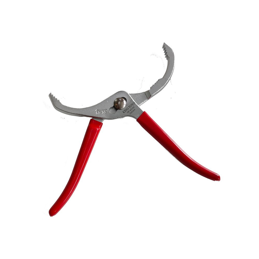 Design: The plier's jaws are serrated/toothed to provide a strong, non-slip grip on the oil filter's body. The adjustable design allows it to accommodate various filter sizes.