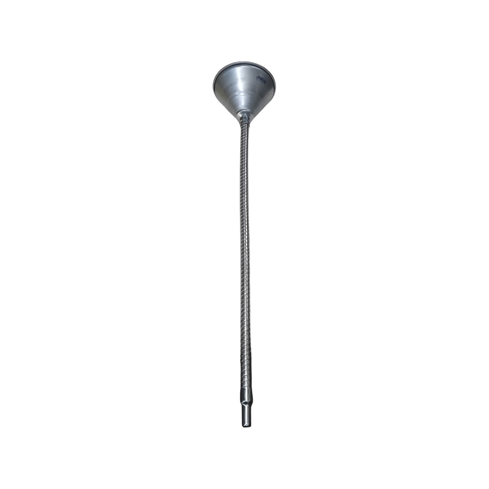 This funnel is a specialized tool designed for automotive, industrial, and general machinery use. It is ideal for accurately pouring fluids (such as oil, coolants, or fuels) into filler necks that are difficult to reach due to the position of the engine or other components. The large 5.5 inch funnel head handles larger volumes, while the 24 inch flexible tube ensures precise and spill-free delivery.