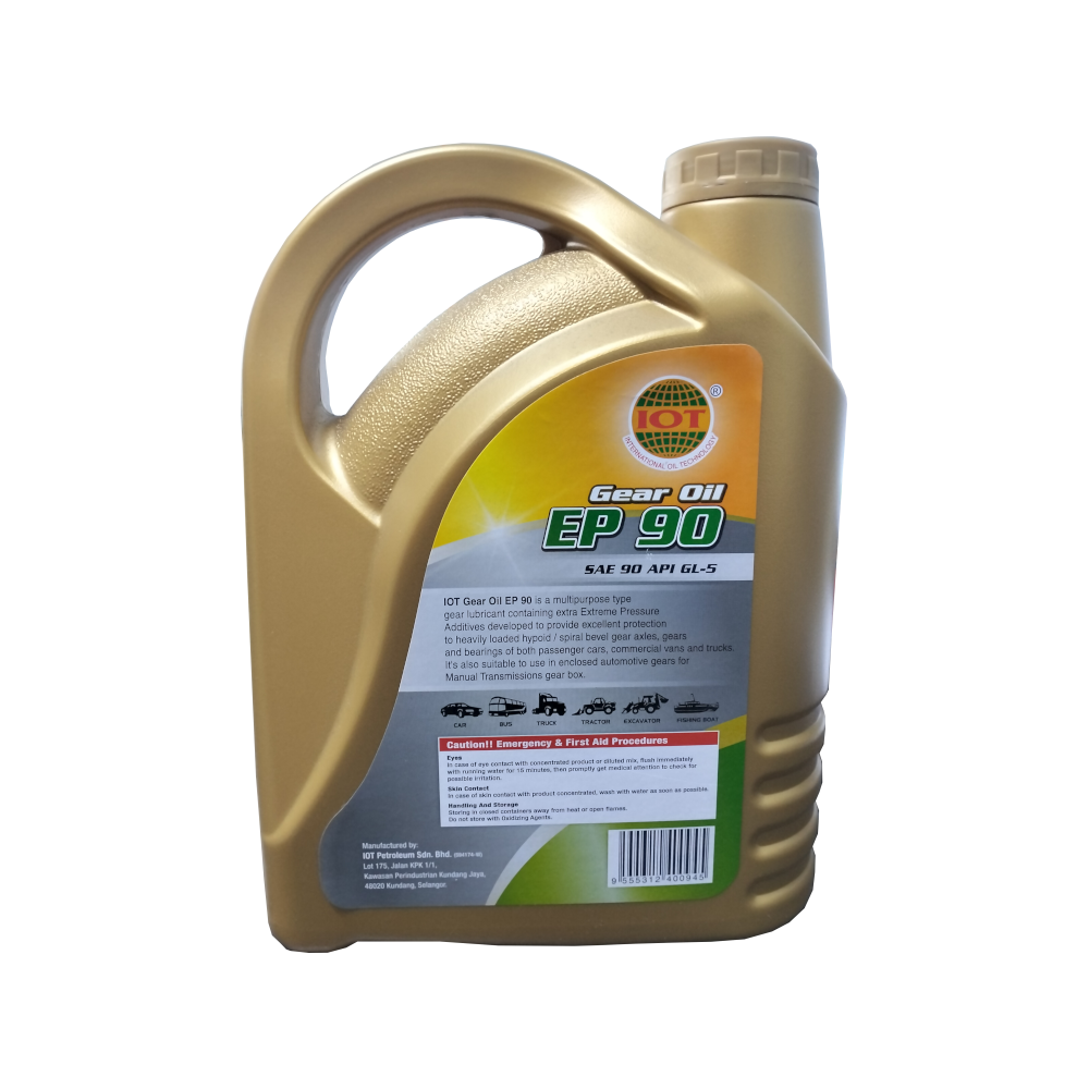 IOT Gear Oil EP 90 is a multipurpose type gear lubricant containing extra Extreme Pressure Additives developed to provide excellent protection to heavily loaded hypoid / spiral bevel gear axles , gears and bearings of both passenger cars , commercial vans and trucks.