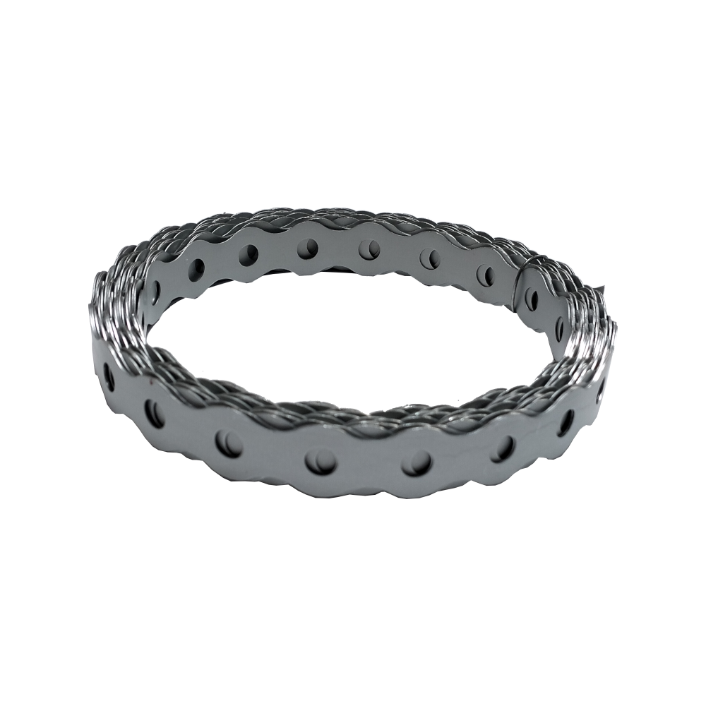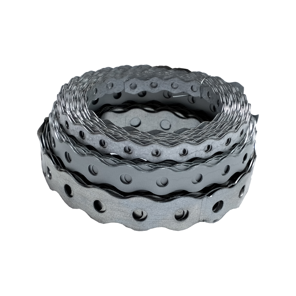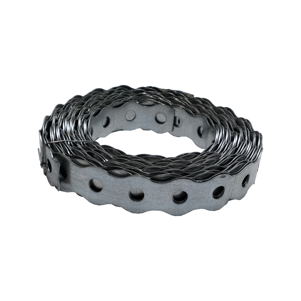 - Perforated strapping band used for hanging large sized pipes, ducts or other miscellaneous items
