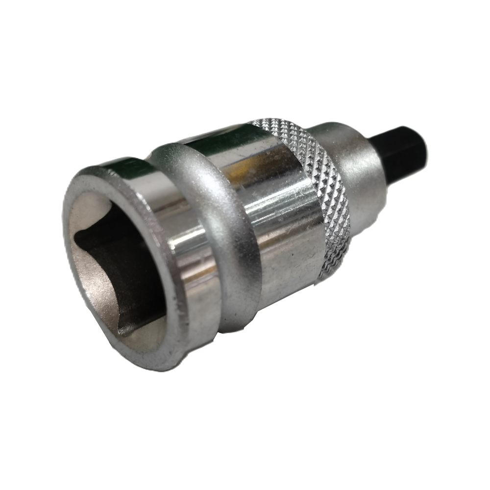 High-Strength Hex Bit: The hex insert itself is made of a hardened steel alloy (likely S2 steel or similar), securely pressed into the socket. This combination ensures the tip resists wear and twisting while the socket handles the torque.
