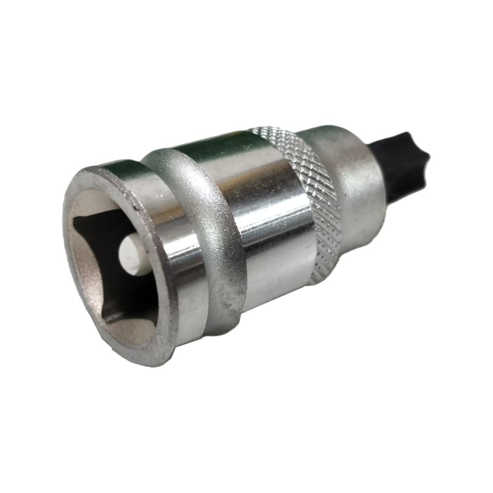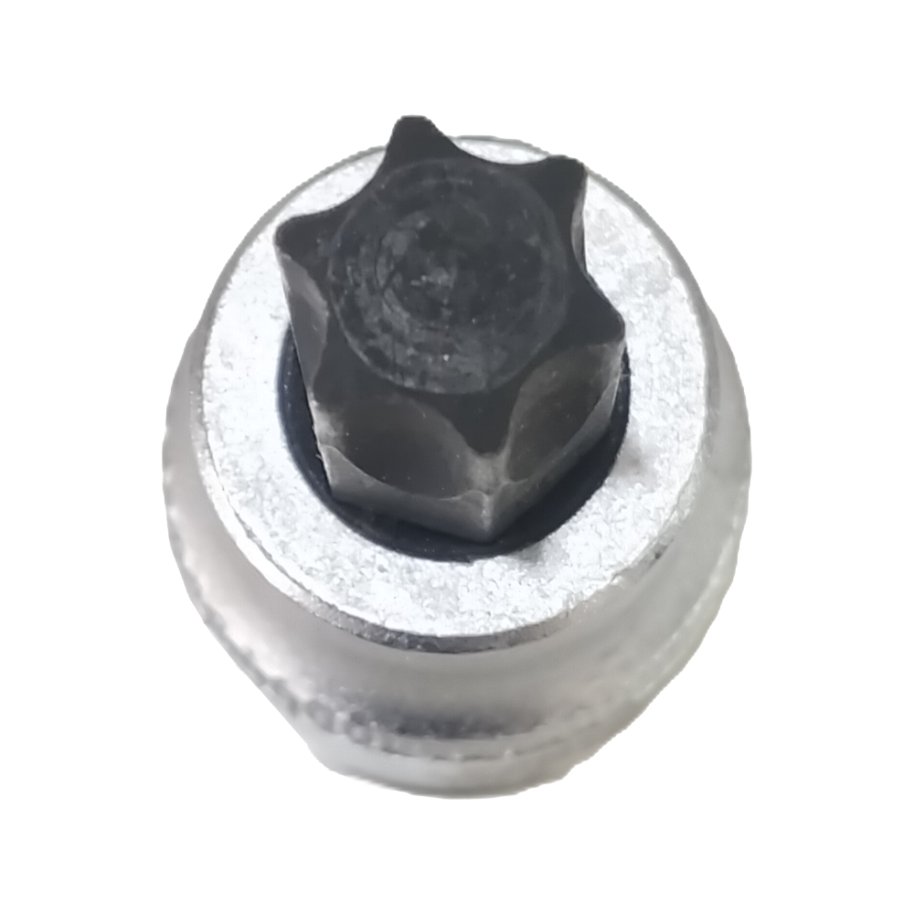 Design: This is a two-piece tool consisting of a socket base and an inserted TORX bit.