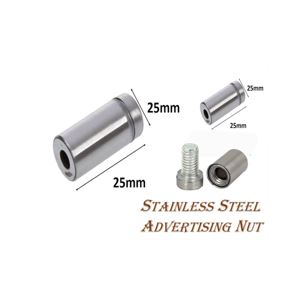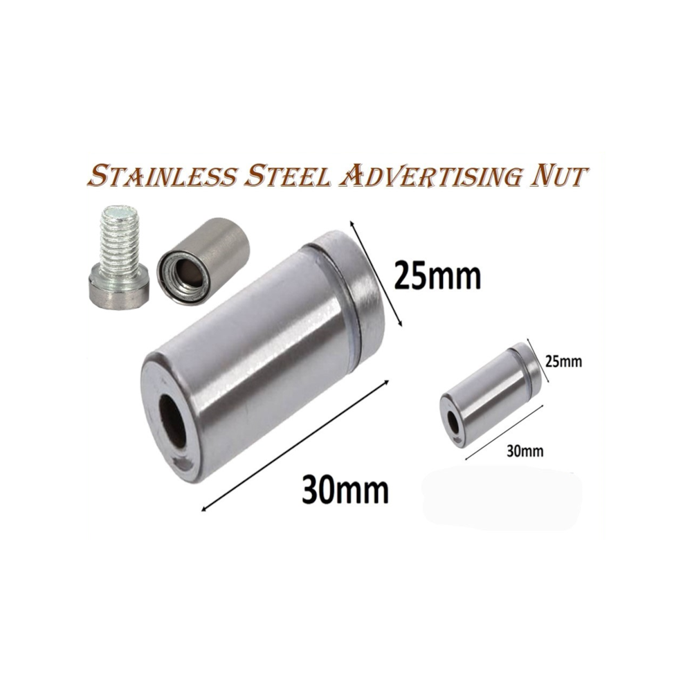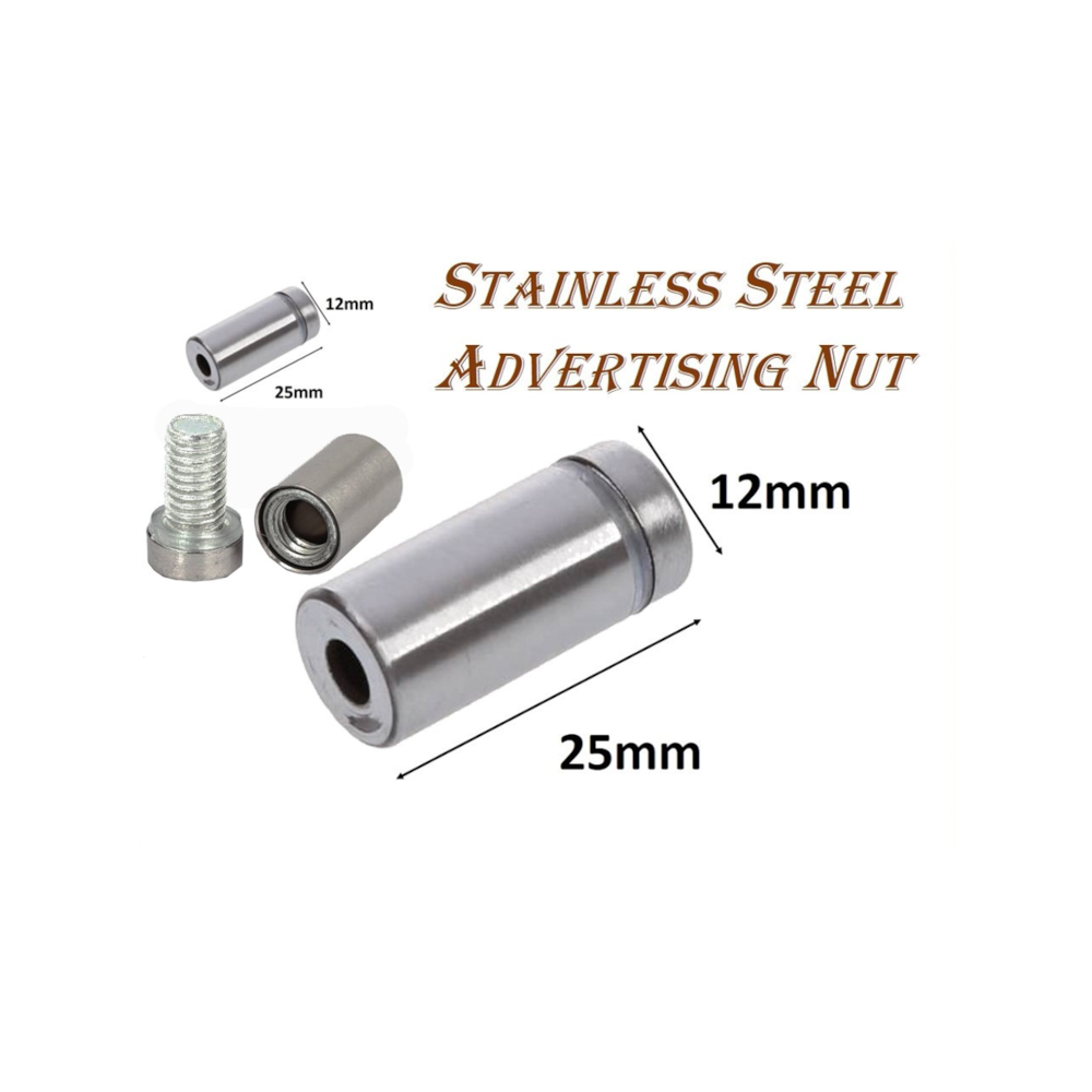This series features high-quality Stainless Steel Advertising Nuts (also known as standoff screws or sign standoffs) designed to mount signs, panels, and displays away from the wall for a clean, professional, and three-dimensional appearance.