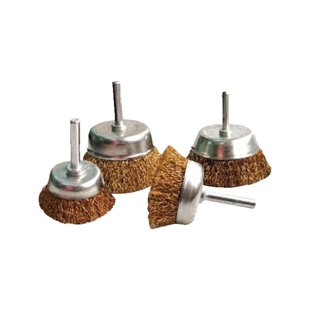 These brass-coated wire cup brushes are high-performance abrasive tools designed for use with power drills and die grinders. The crimped wire construction provides excellent flexibility for light to medium-duty surface preparation, making them ideal for working on contoured surfaces and flat areas alike.