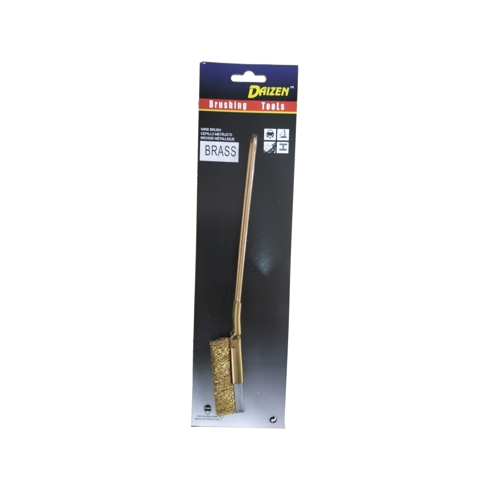 The Daizen Brass Hand Scratch Brush is a professional-grade manual cleaning tool designed for precision and durability. Featuring high-quality brass bristles and a sturdy long-reach metal handle, this brush is ideal for removing rust, paint, and scale from surfaces where a gentler touch is required compared to steel.