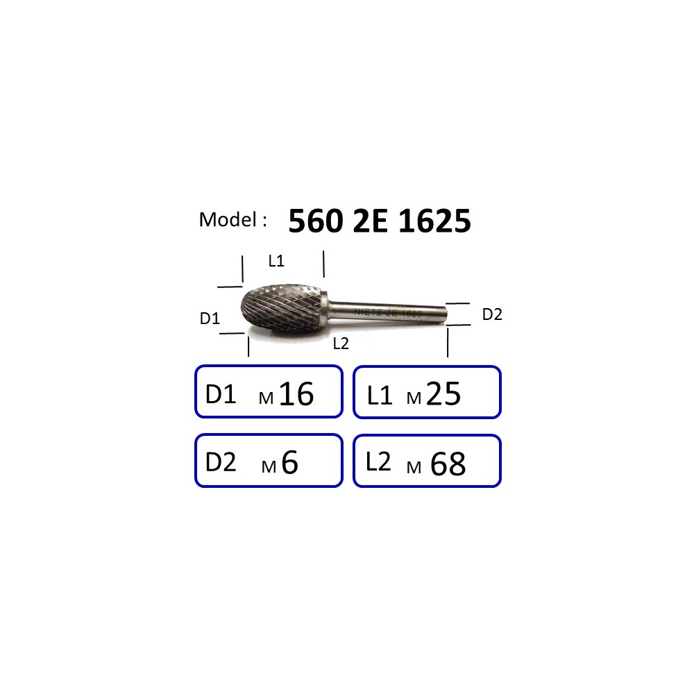 NIETZ DOUBLE CUT TUNGSTEN CARBIDE BURRS ~ OVAL ~ 16 X 25 X 6mm