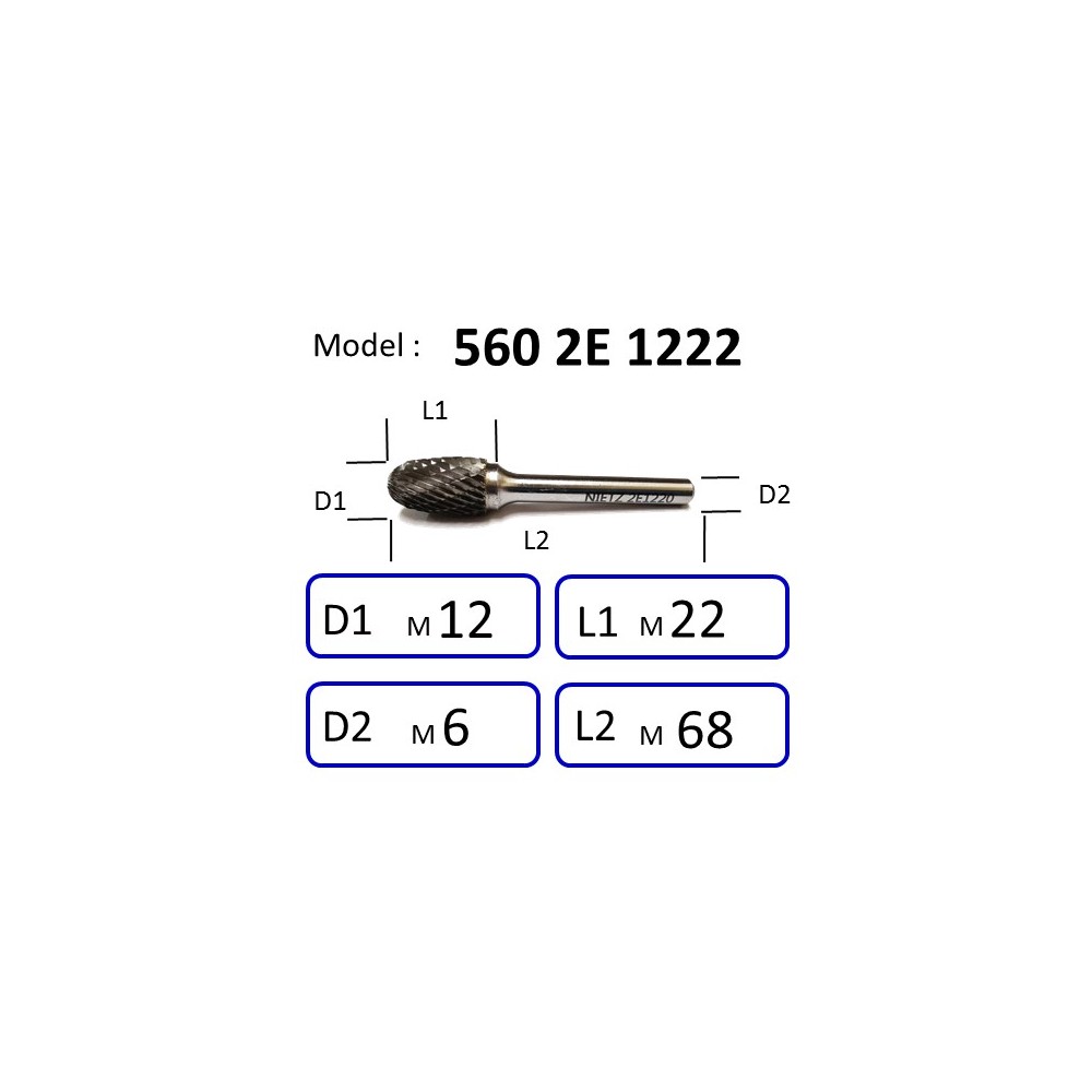 NIETZ DOUBLE CUT TUNGSTEN CARBIDE BURRS ~ OVAL ~ 12 X 22 X 6mm