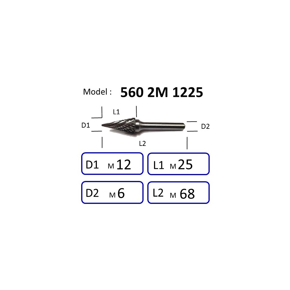 NIETZ DOUBLE CUT TUNGSTEN CARBIDE BURRS ~ CONICAL ~ 12 X 25 X 6mm