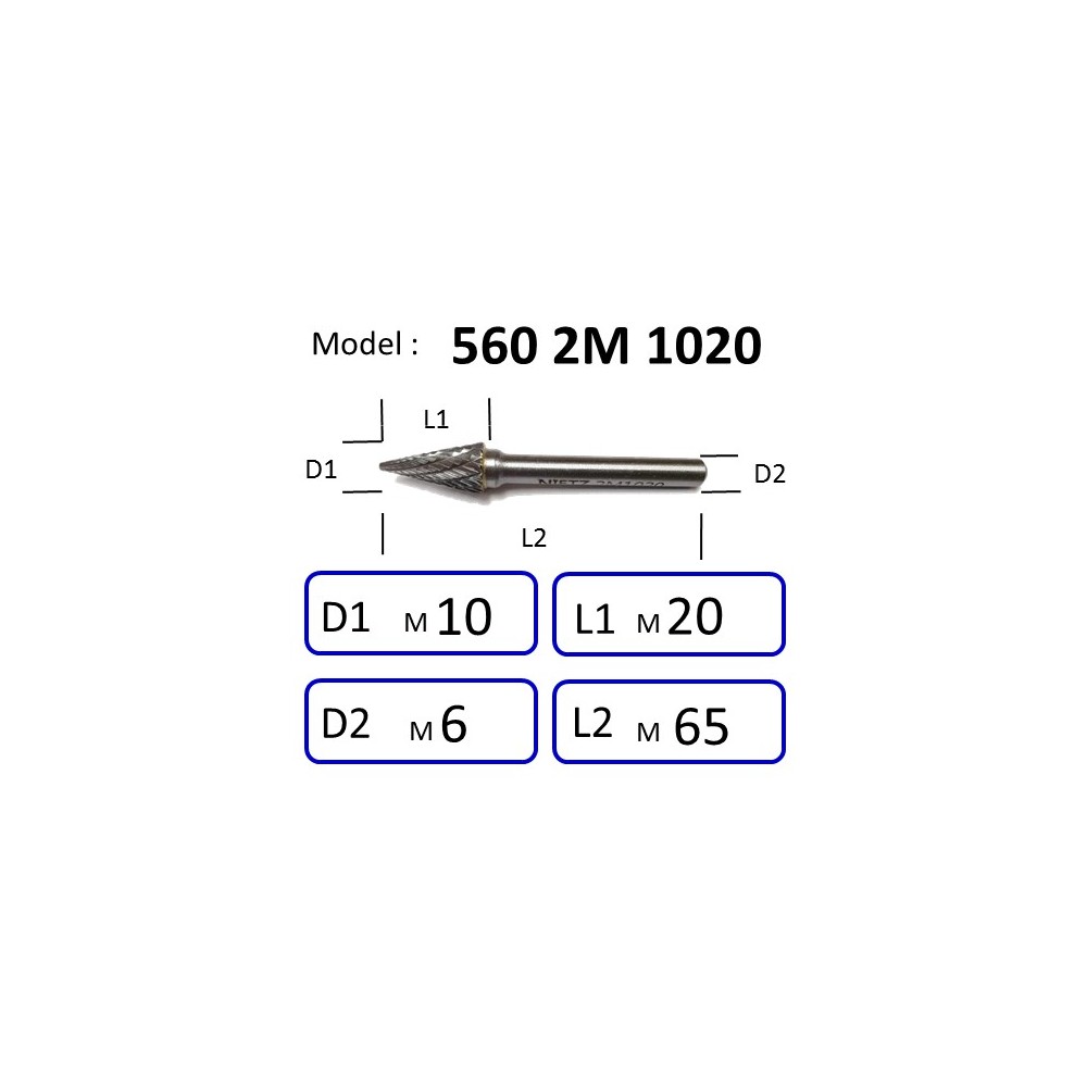 NIETZ DOUBLE CUT TUNGSTEN CARBIDE BURRS ~ CONICAL ~ 10 X 20 X 6mm