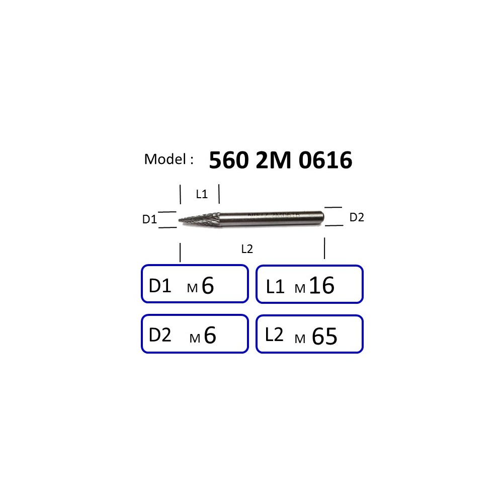 NIETZ DOUBLE CUT TUNGSTEN CARBIDE BURRS ~ CONICAL ~ 6 X 16 X 6mm