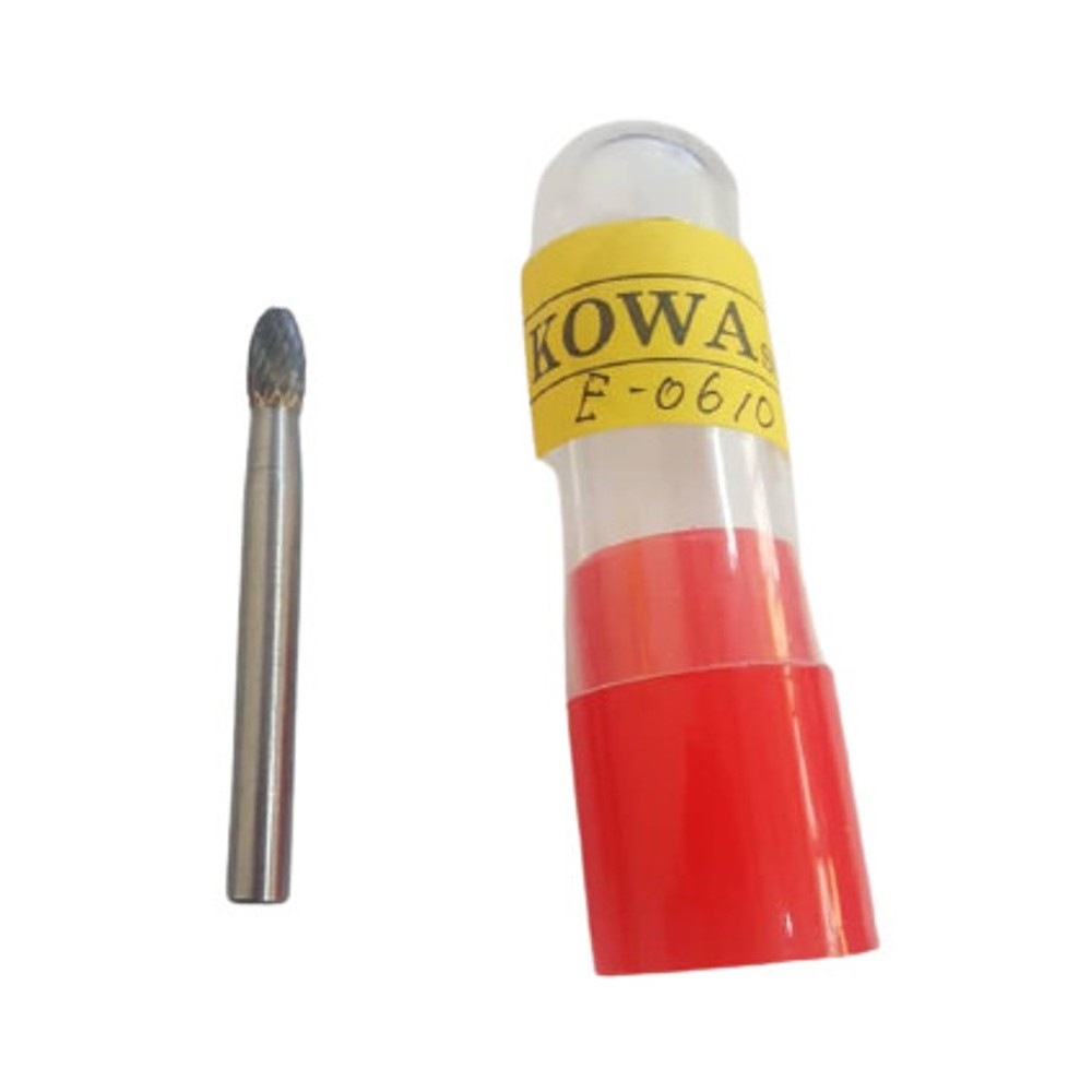 The KOWA SUN E Series TCT (Tungsten Carbide Tipped) Rotary Burrs are designed with an Oval (Egg) shape, making them the perfect tool for rounding off edges and working in curved areas where a standard cylinder or ball nose might not reach comfortably. The double-cut geometry provides rapid material removal with high-quality surface results.