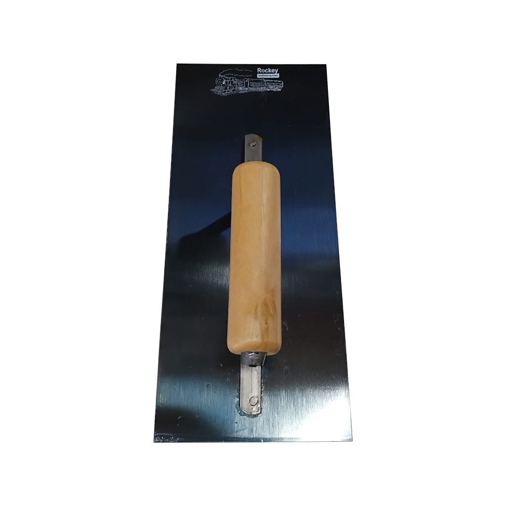 This series of "BLUE" finished steel plastering trowels, featuring the Rockey brand logo, is engineered for superior performance in the application and finishing of plaster, mortar, and cement. The "Blue" finish on the blade indicates a treated steel that often provides enhanced flexibility and an excellent finish surface.