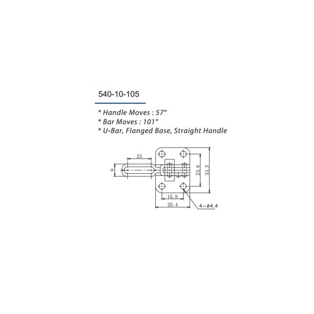 * Handle Moves : 57°* Bar Moves : 101°* U-Bar, Flanged Base, Straight Handle