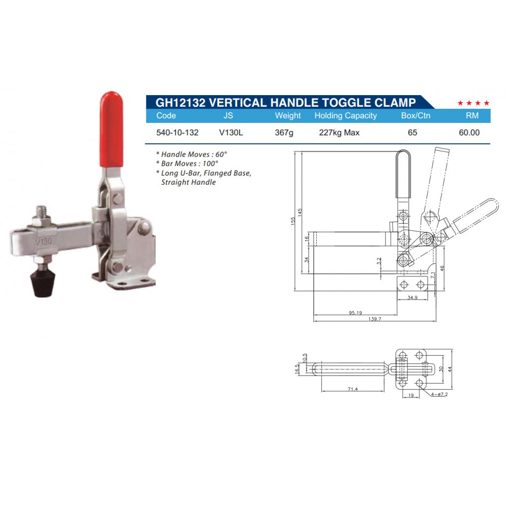 54010-132 T-05 NIETZ GH12132 VERTICAL HANDLE TOGGLE CLAMP 540-10-132