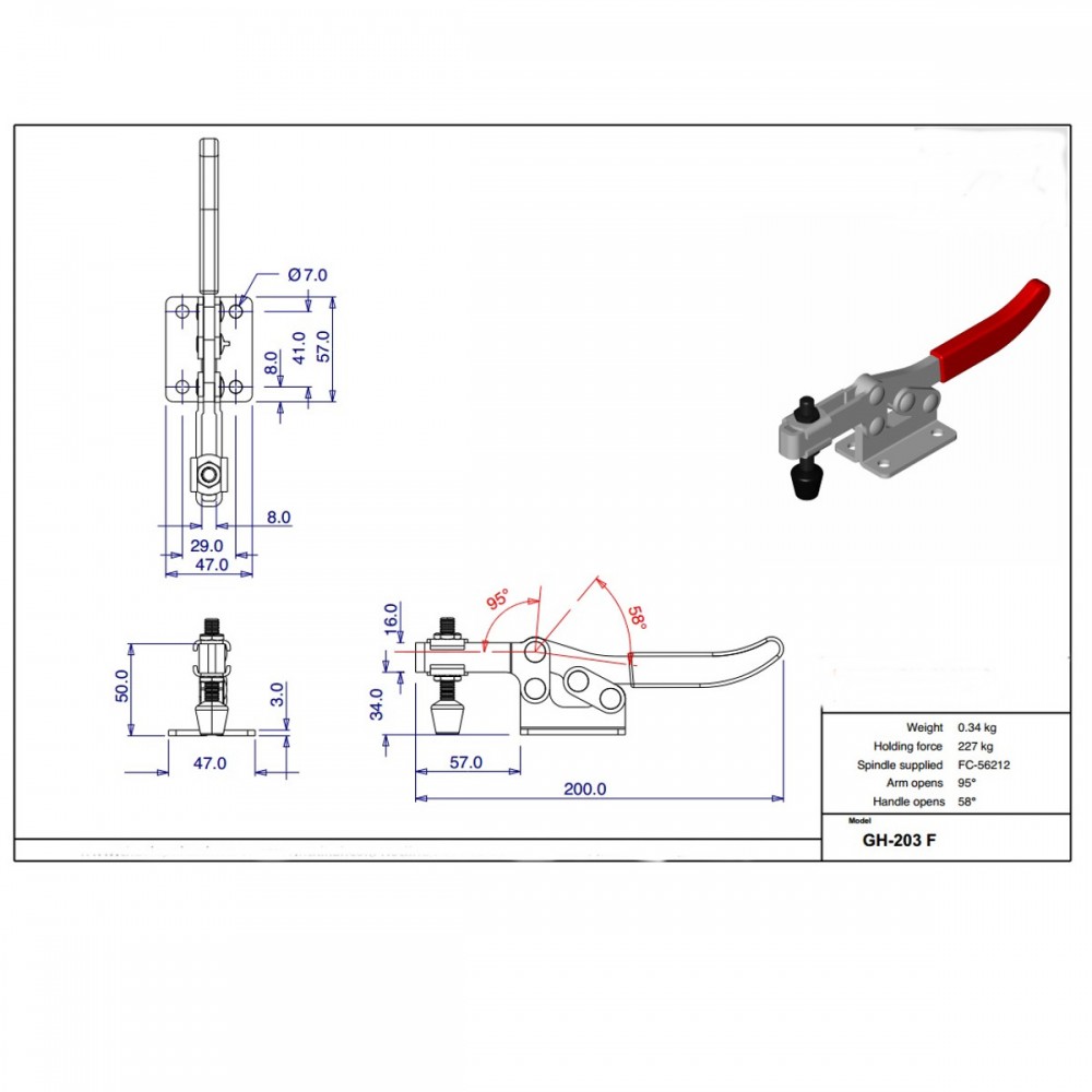 54020-230 GH-203F T-06 NIETZ TOGGLE CLAMP HORIZONTAL HANDLE 540-20-230 | 54020230