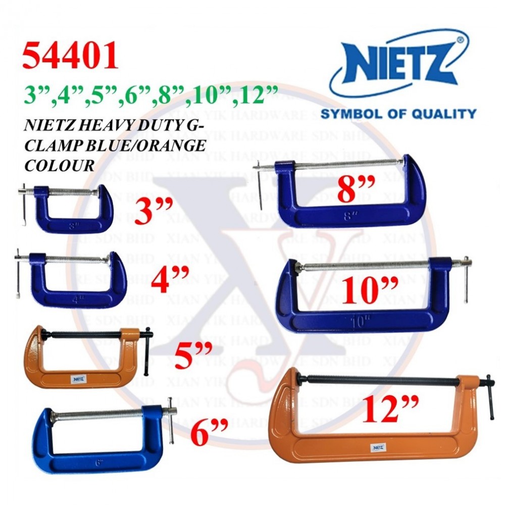 54401-012 (12") NIETZ HEAVY DUTY G-CLAMP BLUE/ORANGE COLOUR 544-010-012 54401012 Weight (kg) 2.4