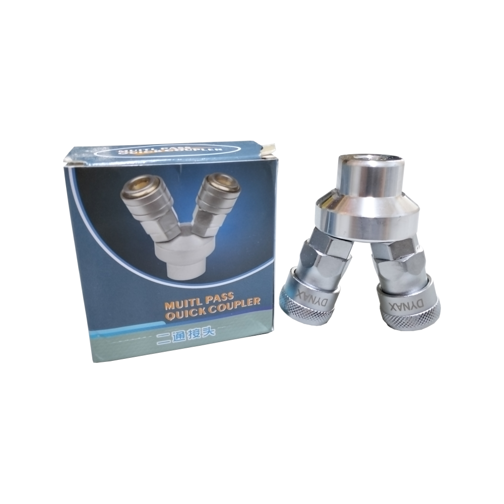 Description: 2-way air quick coupler to connect up to two air hoses simultaneously.