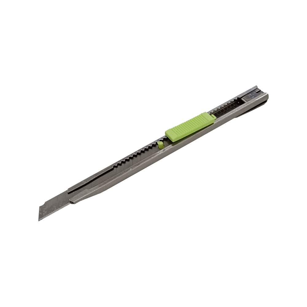 The HENGXINGLI Auto Lock Cutter Utility Knife - 9mm No:201 is a very common type of small, snap-off blade utility knife often used in offices, schools, and for light domestic tasks.