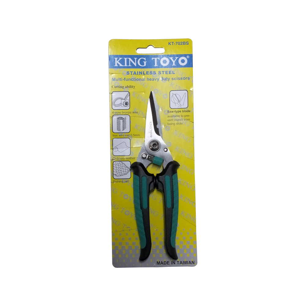 These KINGTOYO professional scissors are a versatile, heavy-duty tool designed for excellent cutting ability across a variety of materials. Made in Taiwan, they feature a durable stainless steel construction and an ergonomic design for reliable performance.