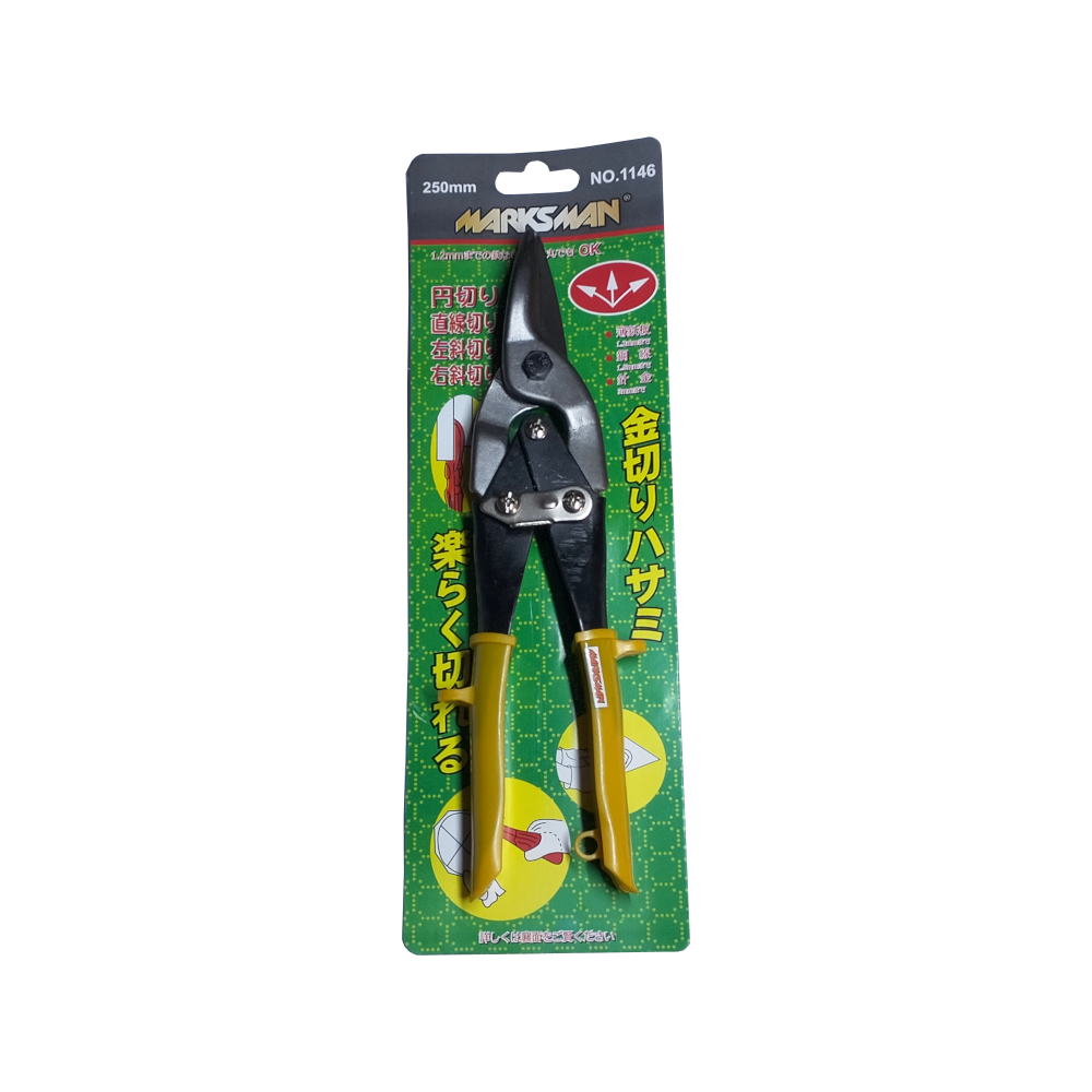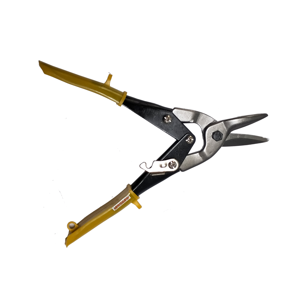 Cutting Capabilities (Yellow Handle - Universal Cut): The yellow handle often indicates a universal or straight-cutting snip, but the tool is designed to handle multiple cut types. The packaging suggests it can perform: