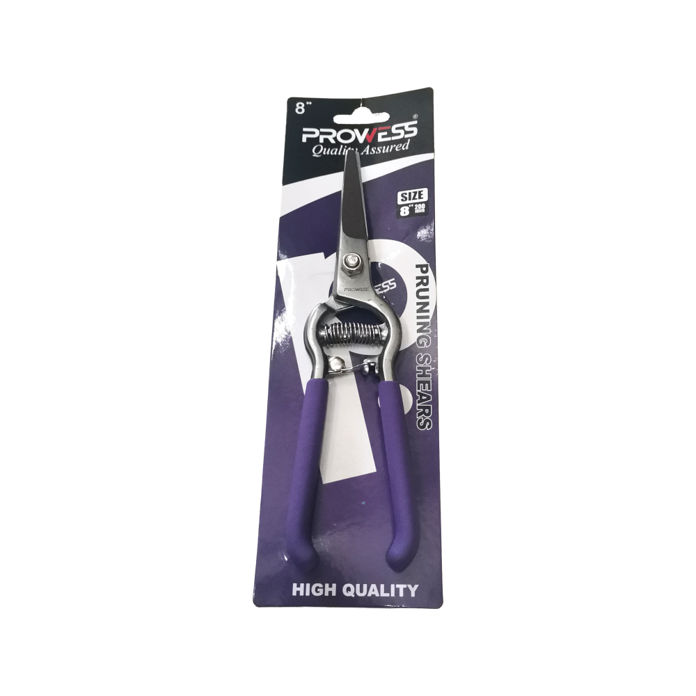 The Prowess PW60-1108 Straight Pruning Shears are professional-grade gardening tools designed for precision cutting and durability. These 8-inch (200mm) shears are engineered to handle a variety of pruning tasks with ease, making them a reliable choice for both home gardeners and professionals.
