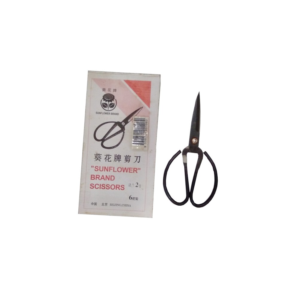The Sunflower Black Iron Handle Scissors are heavy-duty, industrial-grade shears designed for high-strength cutting and long-term durability. Often referred to as "Tailor's Shears" or "Industrial Scissors," these are a staple in workshops, garment factories, and gardens due to their robust all-metal construction.