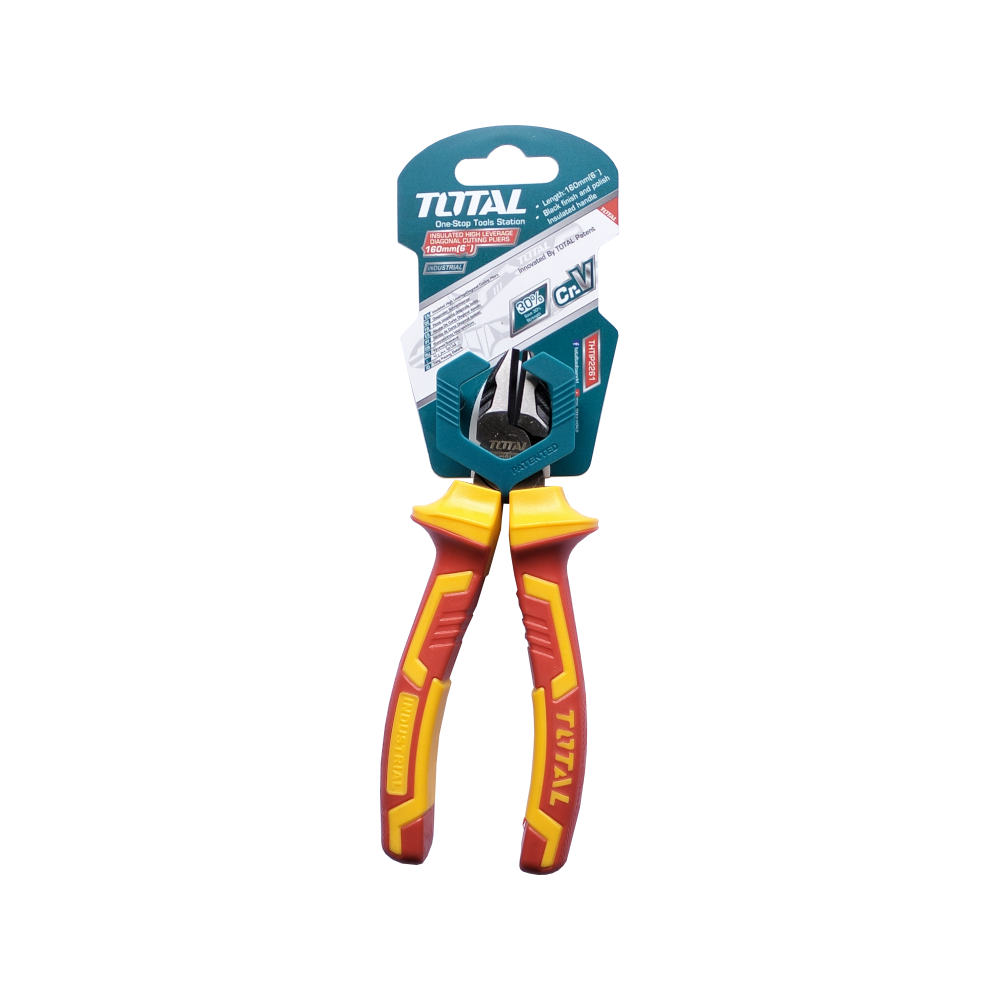 The TOTAL Insulated High Leverage Diagonal Cutting Plier (THTIP2261) is an industrial-grade tool designed for professional electricians and technicians. Rated for high-voltage environments, these 160mm pliers combine safety with a high-leverage mechanism to deliver superior cutting power with reduced hand effort.