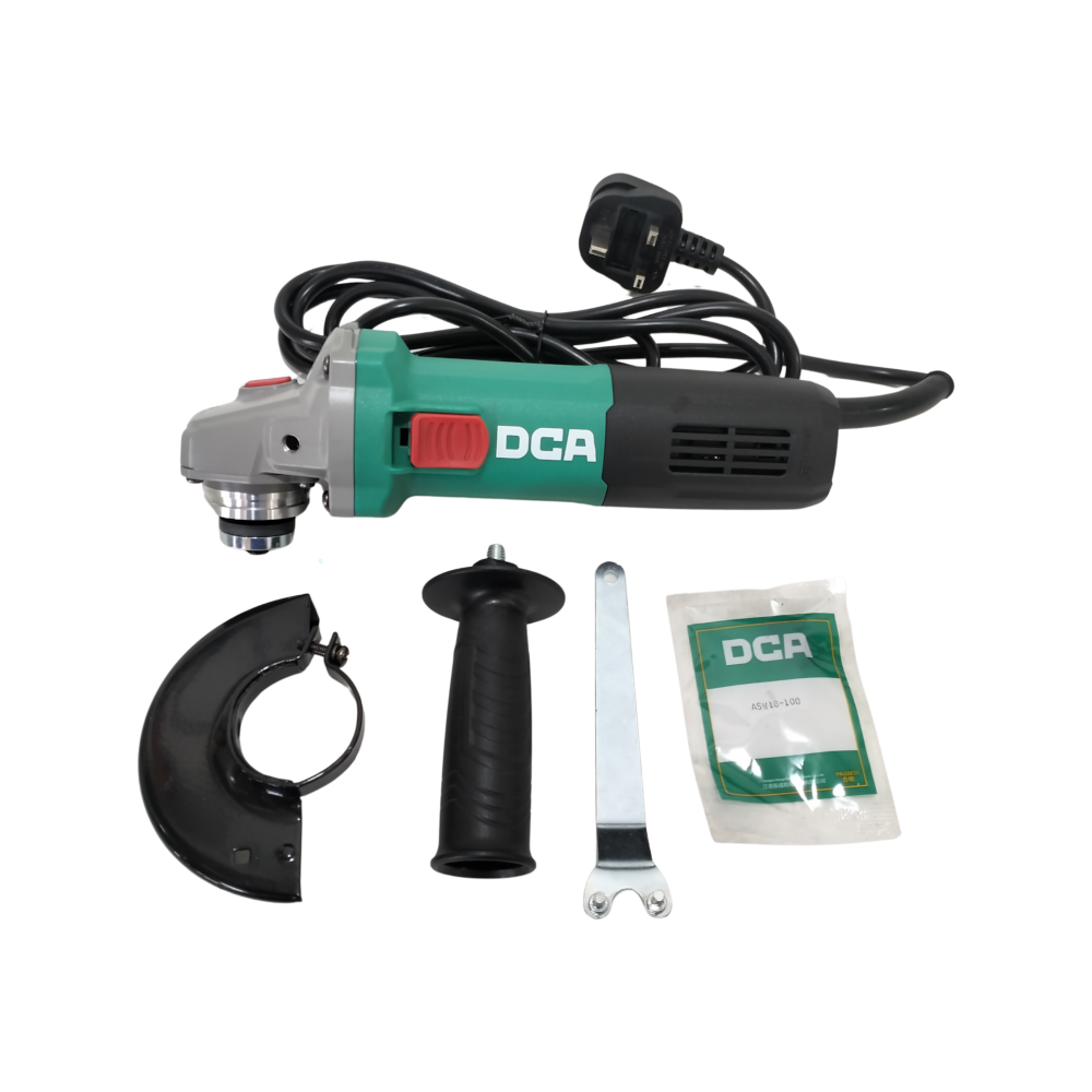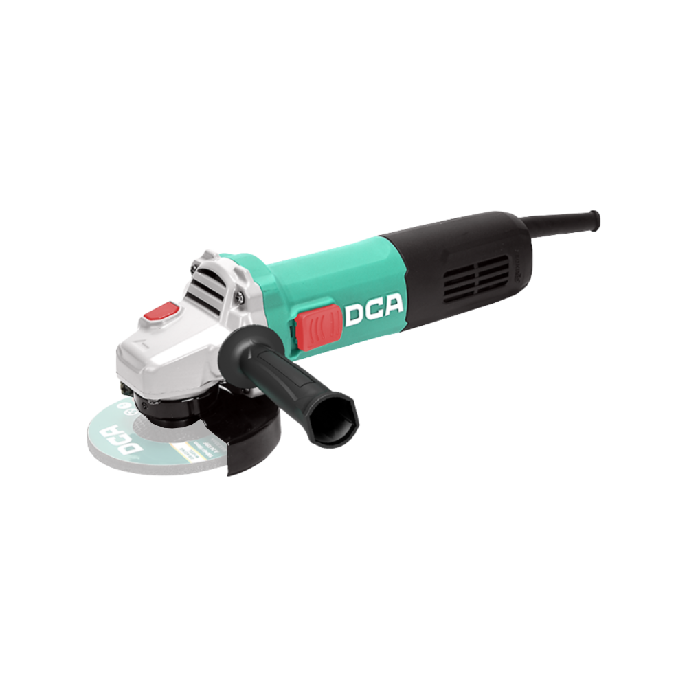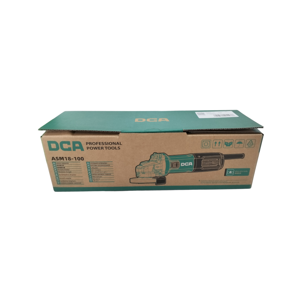 The DCA ASM18-100 is a professional-grade power tool featuring an ultra-slim body design for enhanced maneuverability and comfort. This 4-inch angle grinder is built for efficiency in grinding and cutting applications, utilizing a side-mounted slide switch for easy operation.