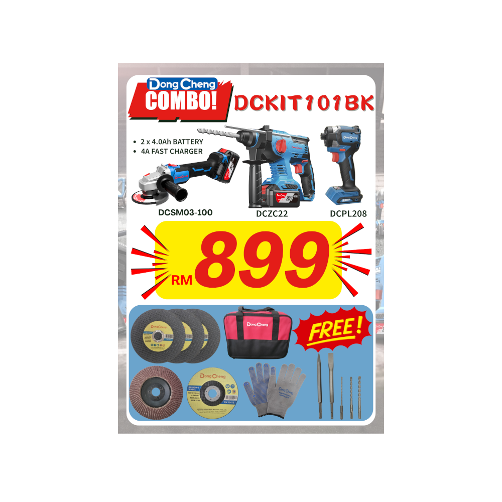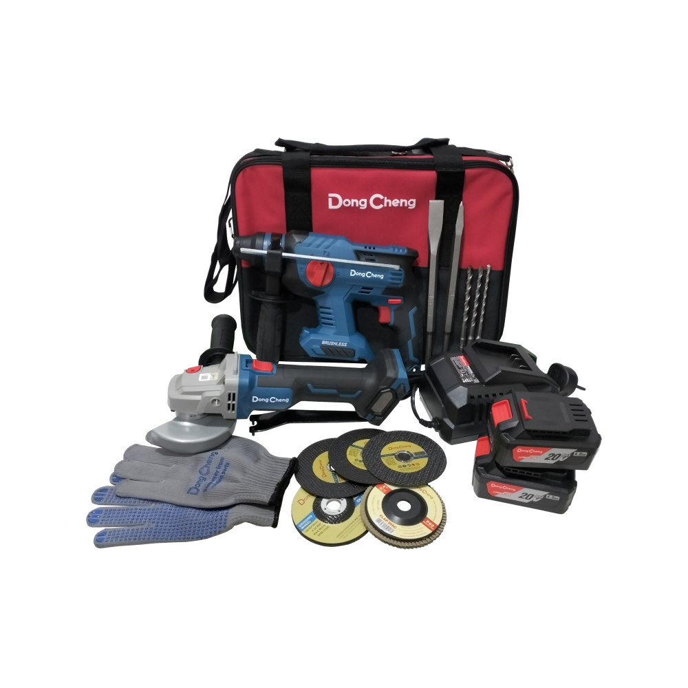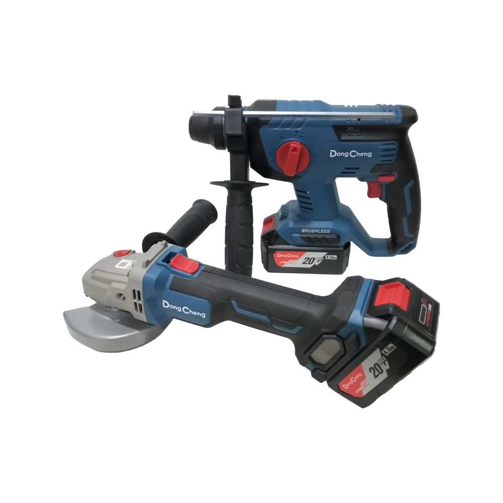 Dong Cheng DCKIT10BK 20V Cordless Brushless Combo Kit Typical Kit Components: 1 x DCZC22 Cordless Brushless Rotary Hammer (Solo/Machine...