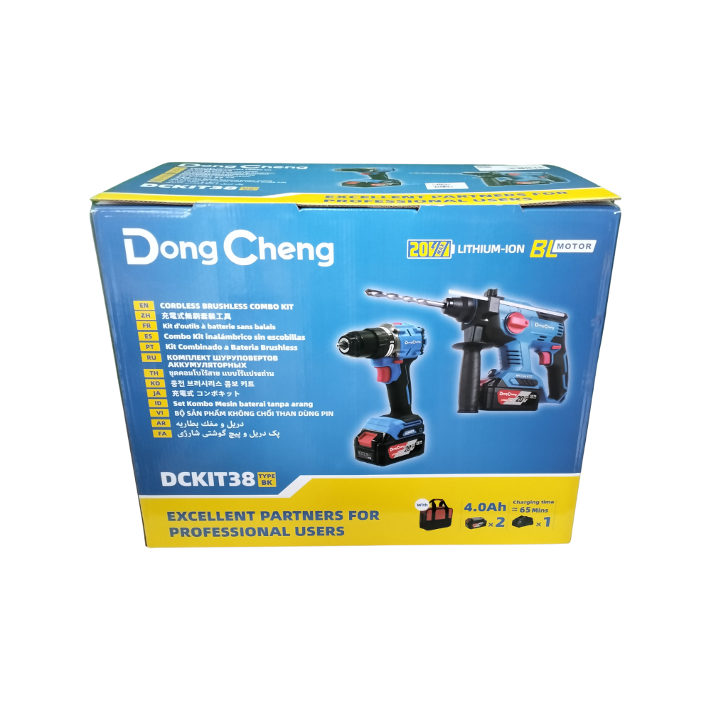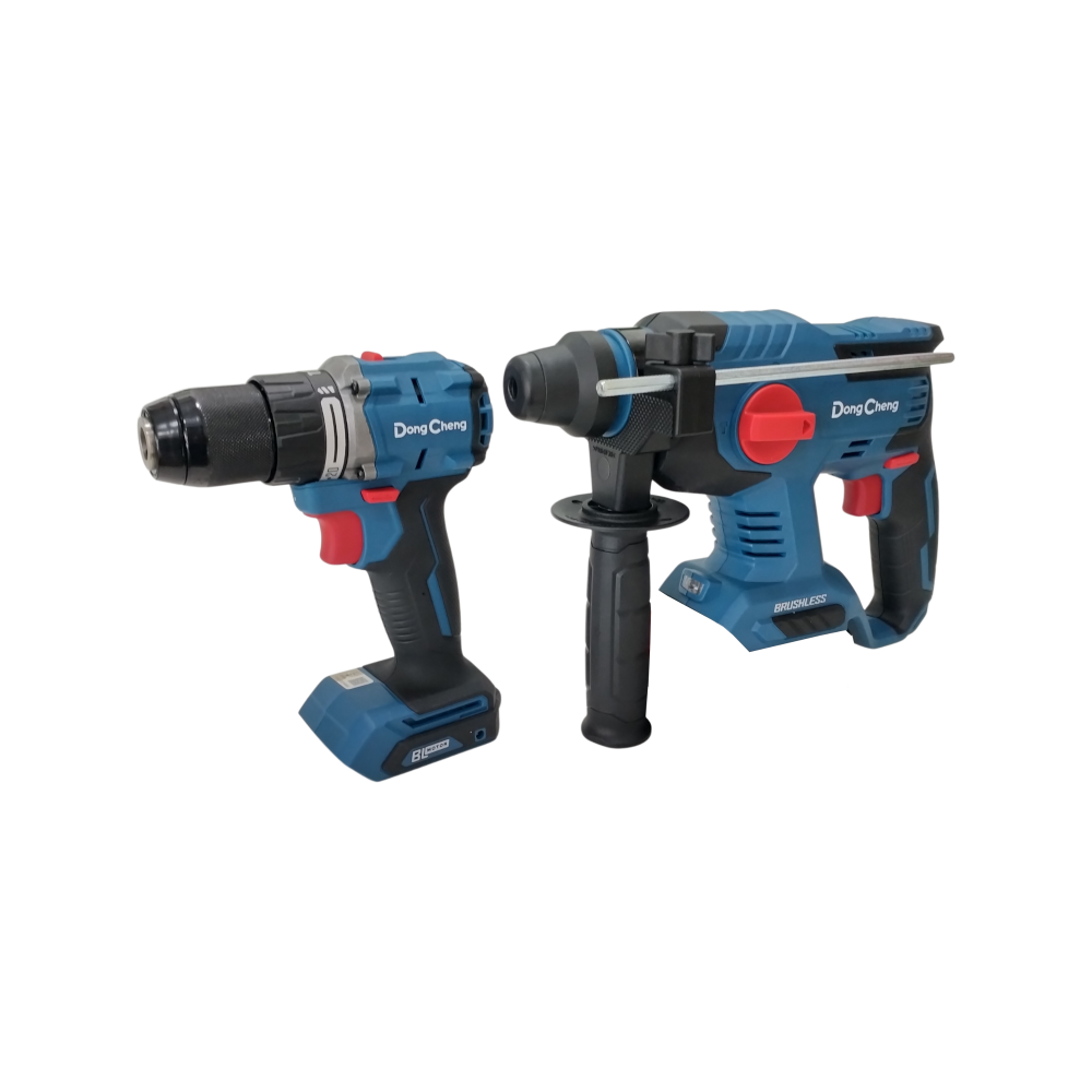 - This professional-grade combo kit from Dongcheng provides two essential, high-performance cordless power tools, complete with all the necessary accessories for demanding construction and renovation tasks. Featuring powerful brushless motors and high-capacity 21V x 4.0Ah batteries, this kit is designed for maximum efficiency and runtime.