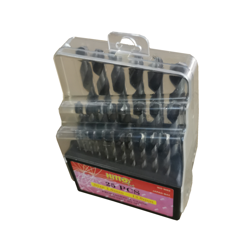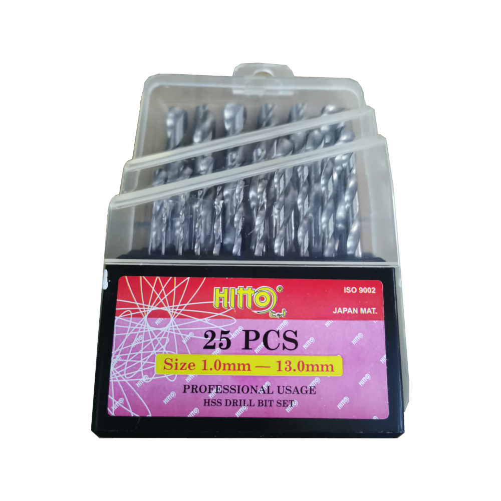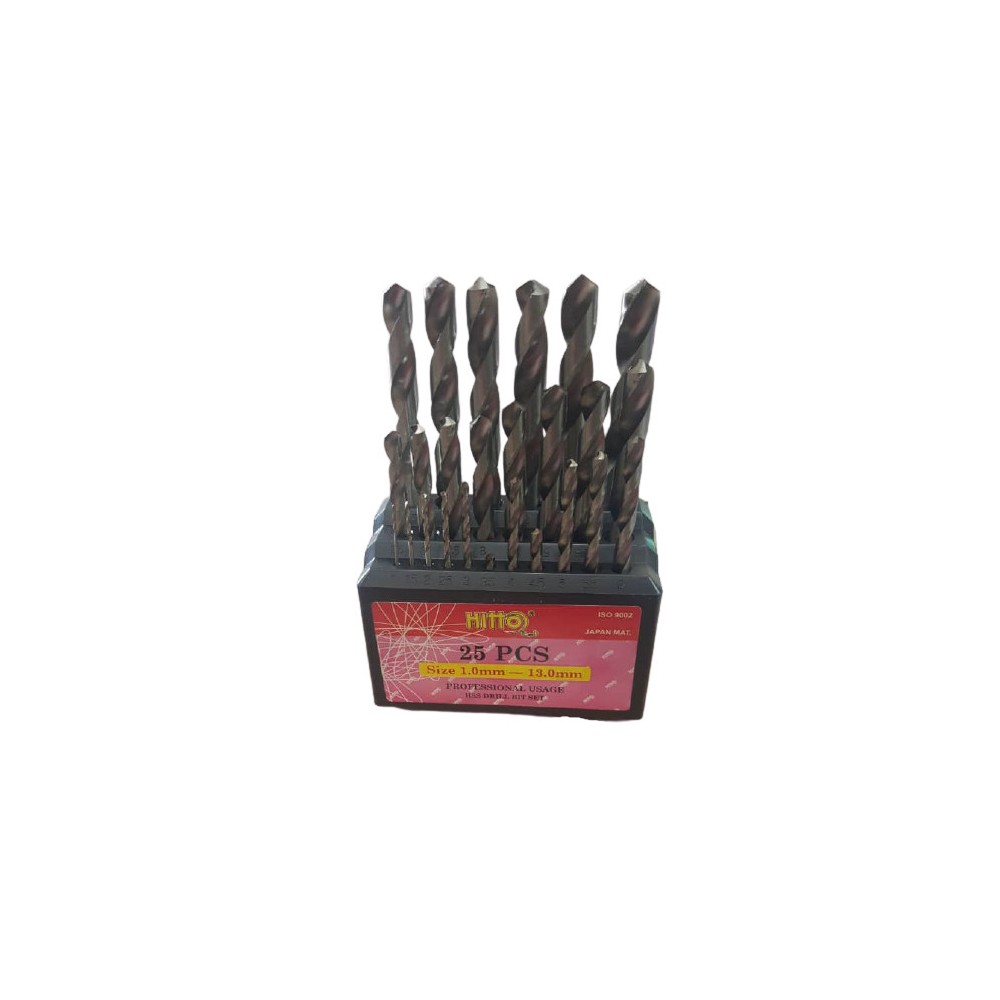 The HITTO 25-Piece Metric (MM) Drill Bit Set (1.0 - 13.0 mm) is the most complete metric set offered by HITTO in the standard HSS twist drill bit range.