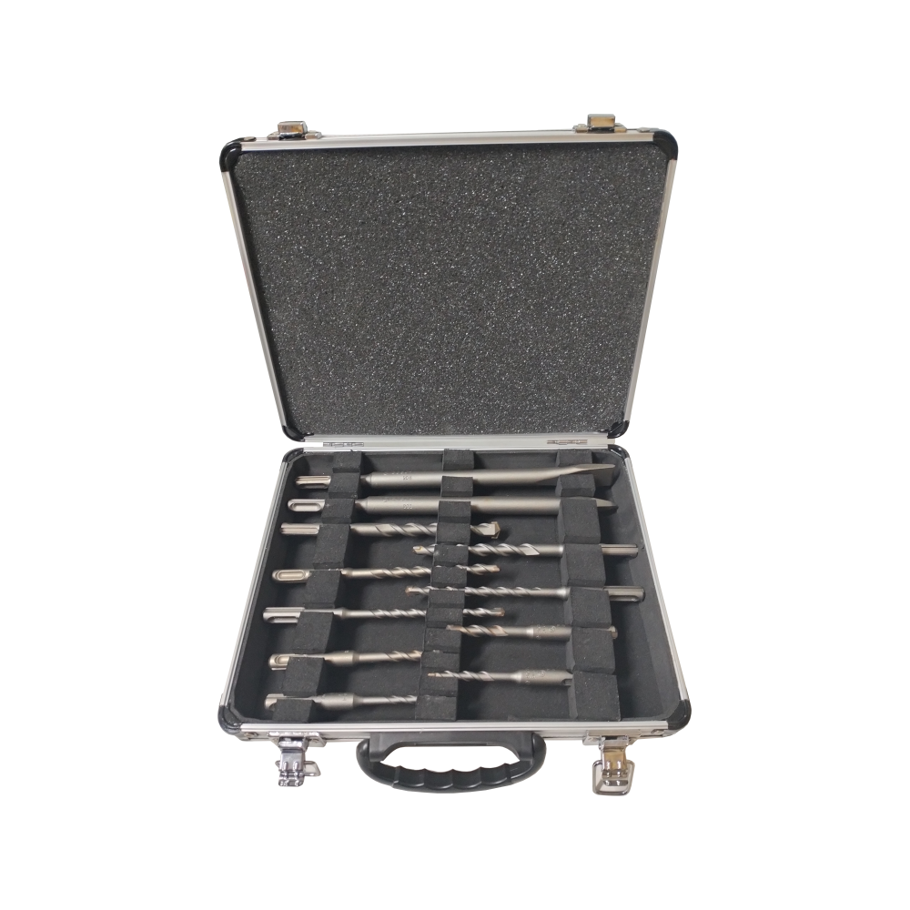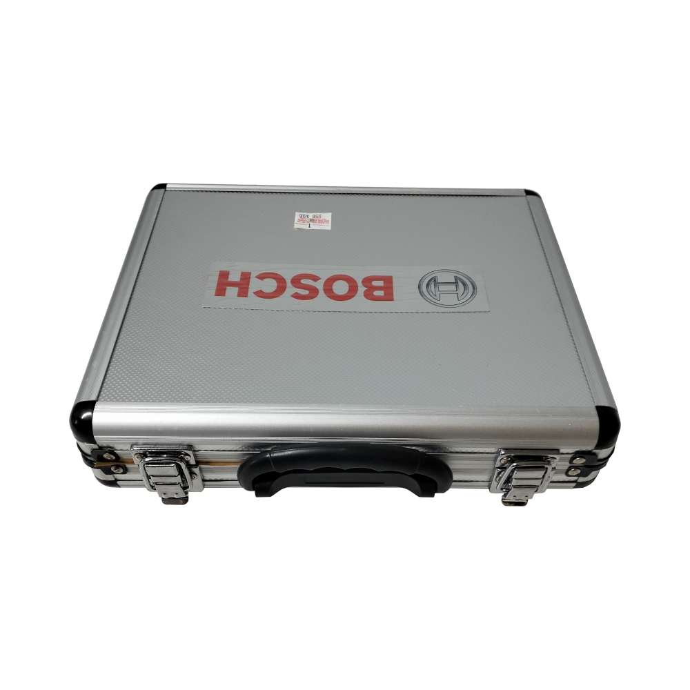 This comprehensive Bosch professional accessory set is designed for use with SDS-Plus rotary hammers. It provides a versatile selection of high-quality hammer drill bits and chisels, making it an essential kit for masonry, concrete, and brickwork applications. The set is housed in a robust, foam-lined aluminum carrying case with secure latches and a comfortable handle for easy transport and organized storage.