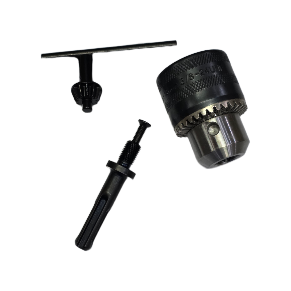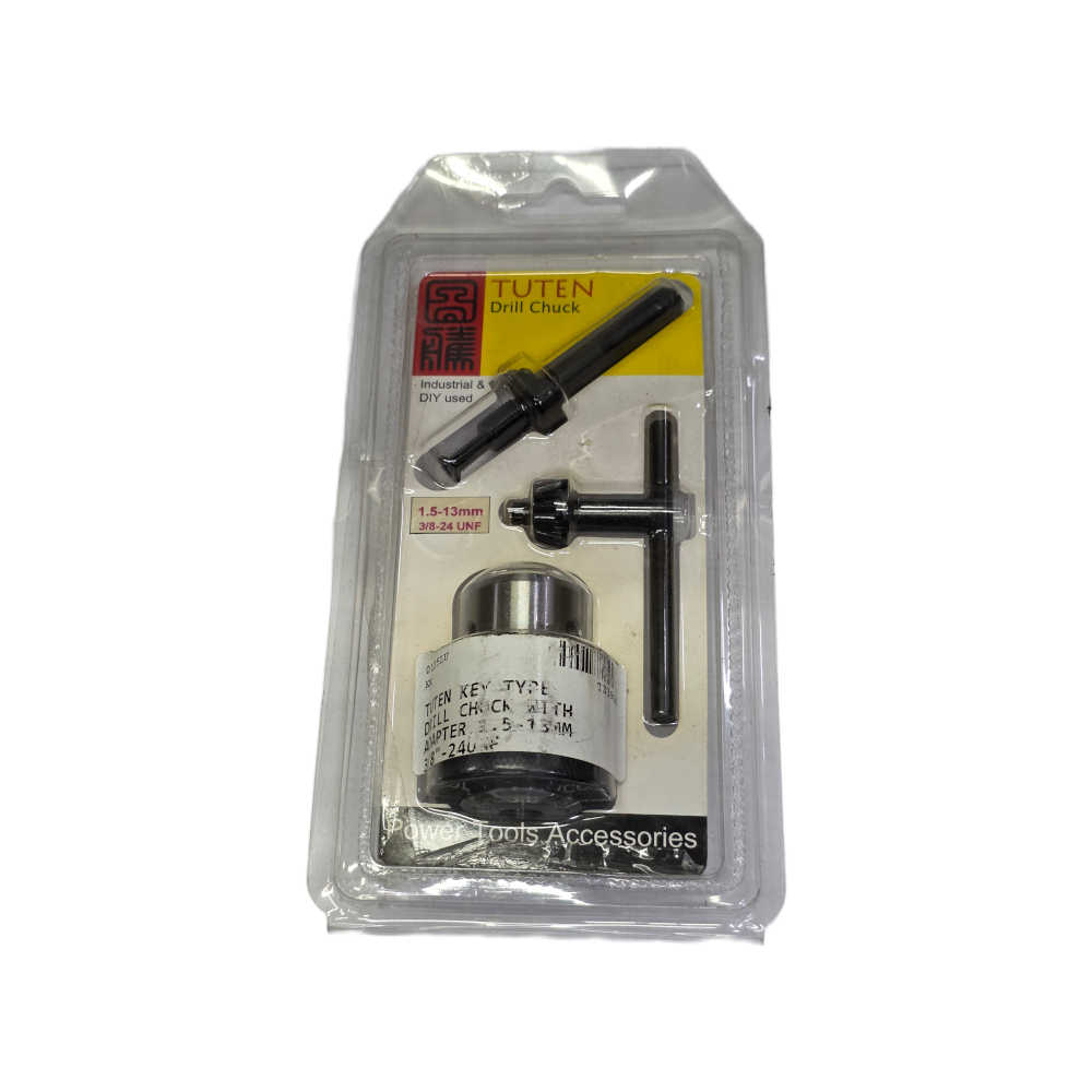 The TUTEN 13mm Key-Type Drill Chuck with Adaptor is a heavy-duty accessory designed to expand the versatility of your power tools, such as impact wrenches or rotary hammers. It allows you to use standard round-shank drill bits on machines that typically only accept specialized bits or sockets.