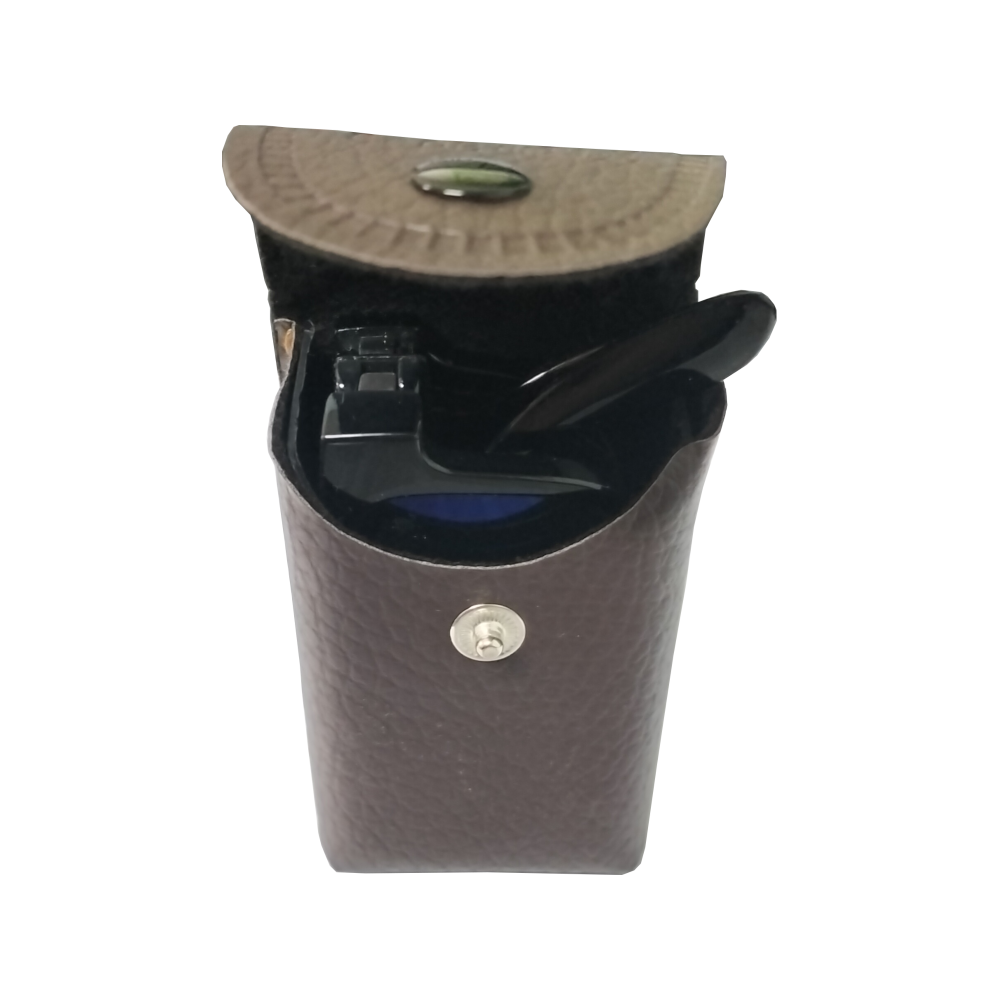 Leather Bag: A small, brown leather pouch with a snap closure, offering more protection and a more premium look.