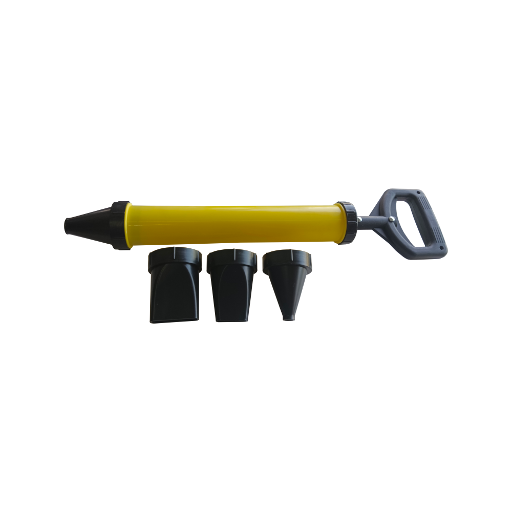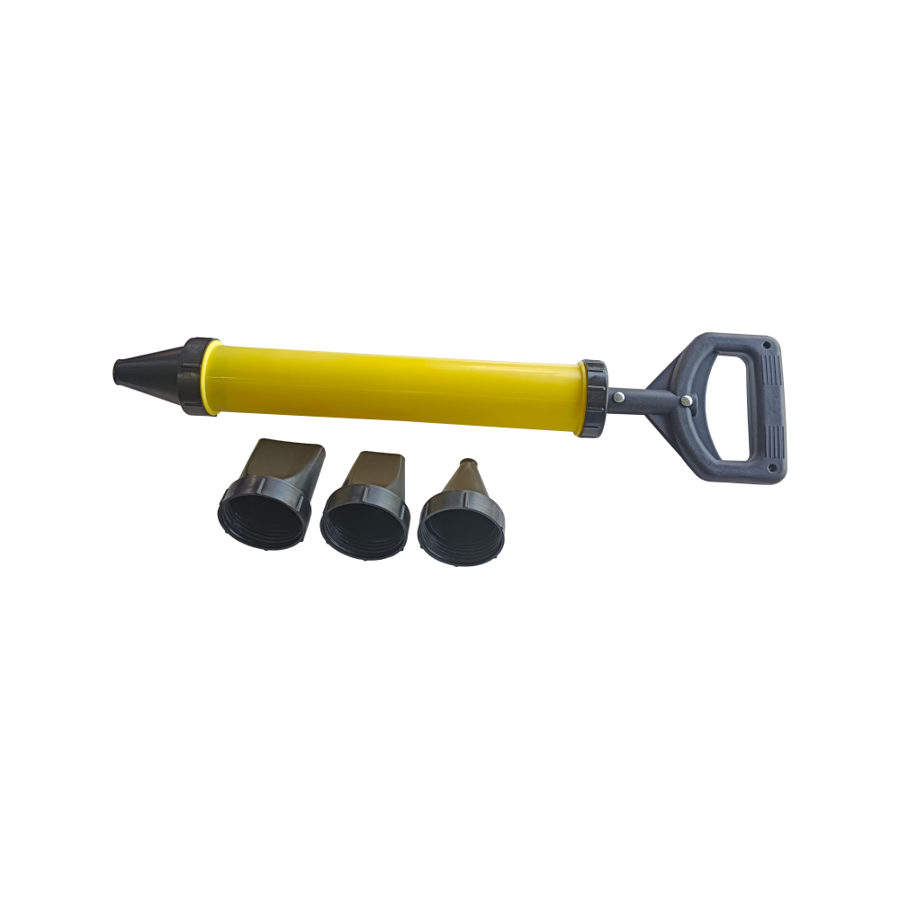 MORTAR GUN / CEMENT GUN: The tool's function. It is a large-capacity caulking gun designed to dispense wet mortar, cement, or grout (not standard caulk) more easily and precisely than traditional trowel methods. This is particularly useful for: