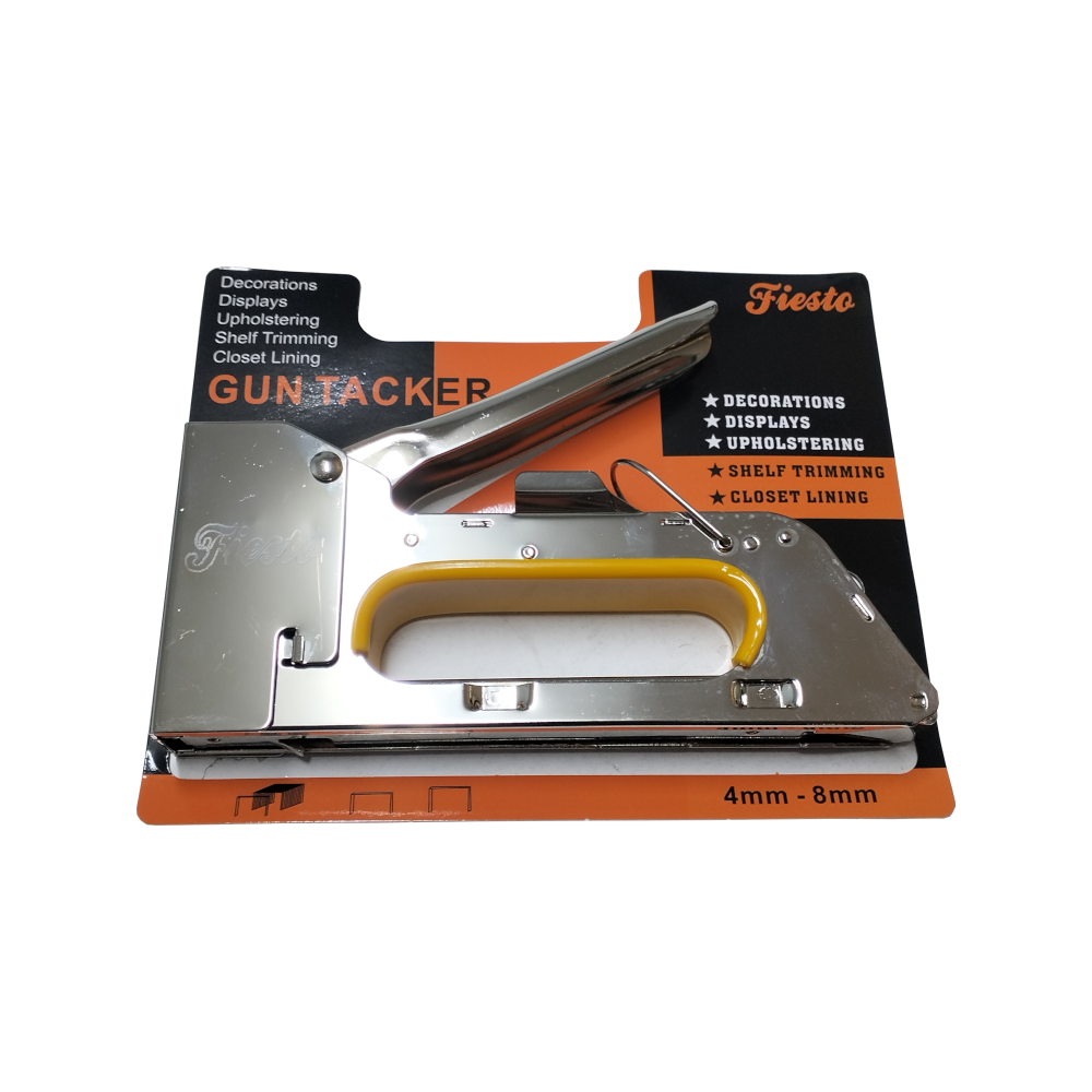The FIESTO GSG-223 is a light-to-medium-duty all-steel staple gun frequently used for DIY projects, upholstery, and home repairs. It is valued for being a compact yet durable tool that mimics the design of professional-grade Swedish tackers.