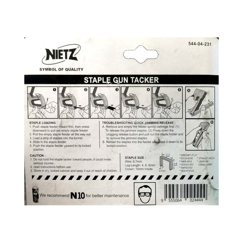 Versatility: Most NIETZ staple guns are designed to be compatible with multiple types of staples, such as T50, JT21, or similar sizes, though the specific compatible staples for this model would need to be confirmed.