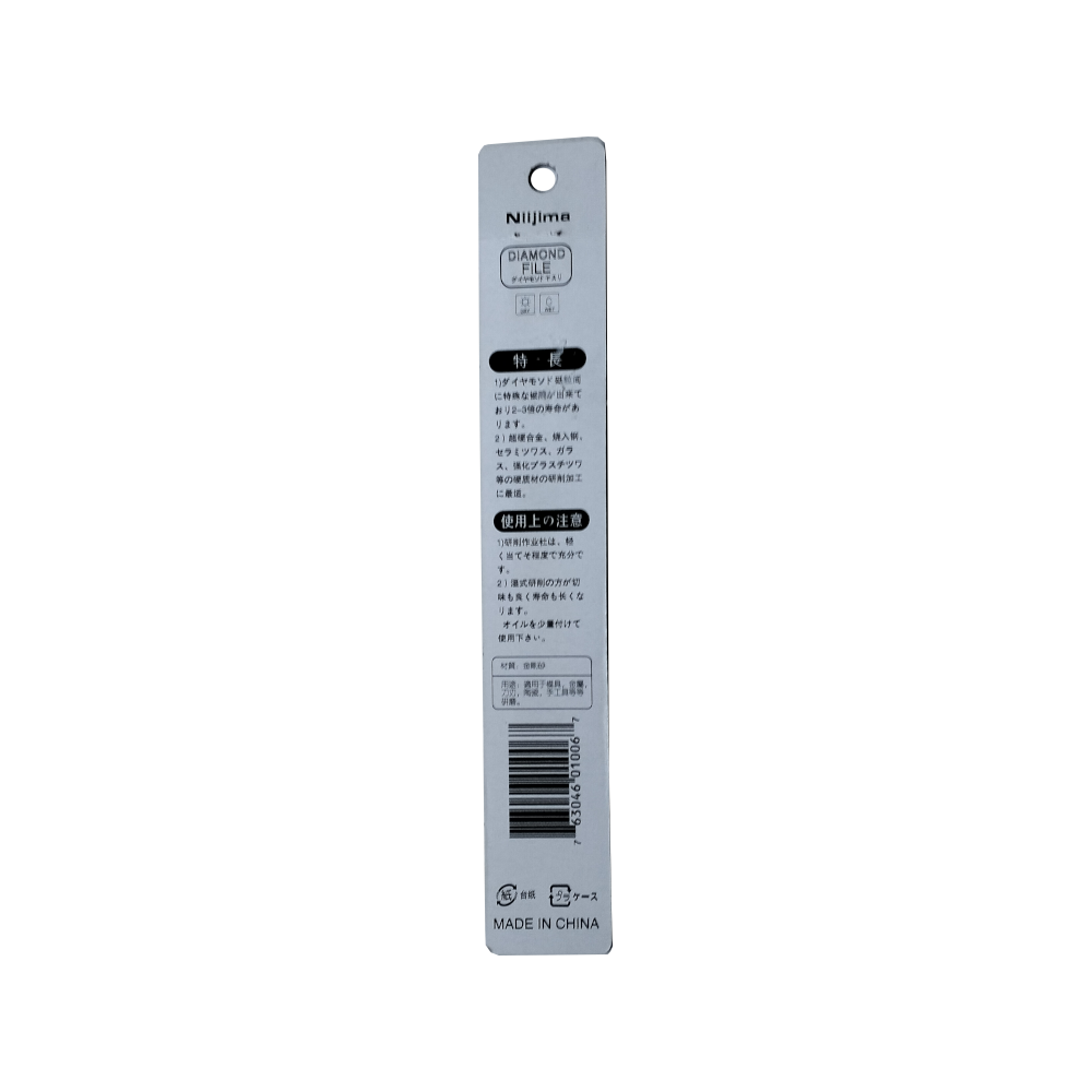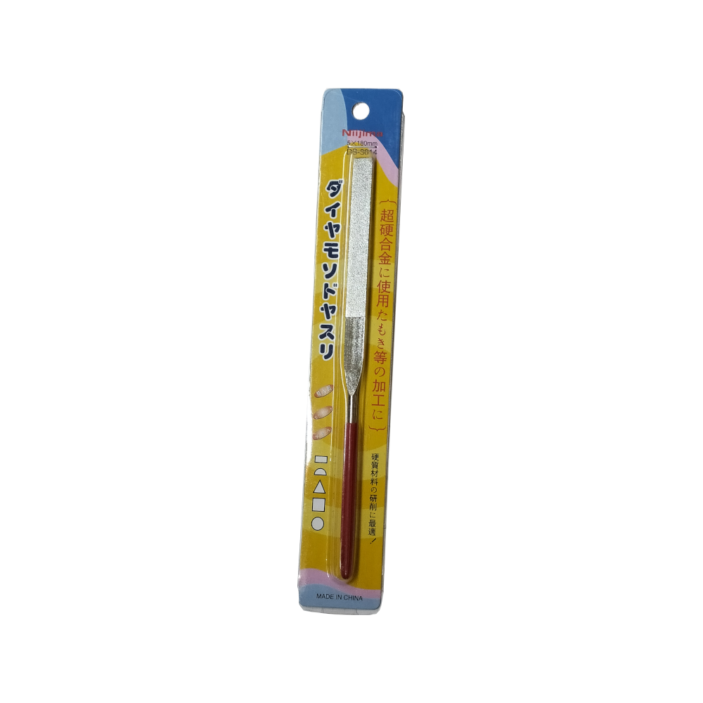 This is a flat-type diamond needle file from the Niijima brand, designed for precision filing and shaping of very hard materials.