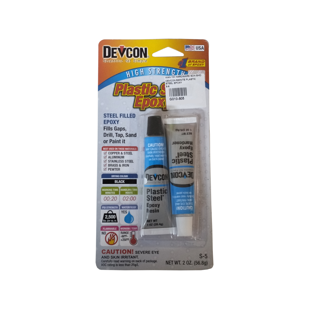 DEVCON Plastic Steel Epoxy is a high-strength, steel-filled epoxy adhesive designed for heavy-duty repairs. This fast-curing formula is engineered to fill gaps and bond to a variety of metals, providing a permanent fix that is as tough as steel.