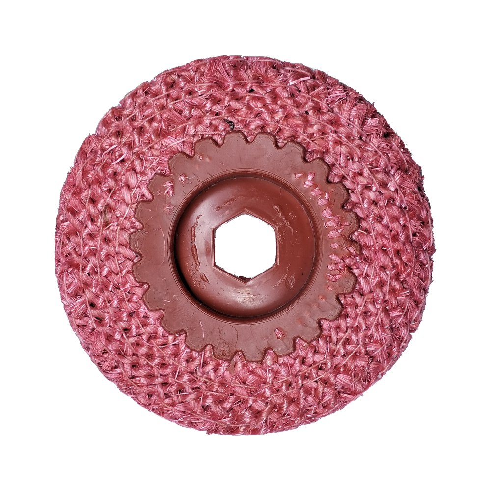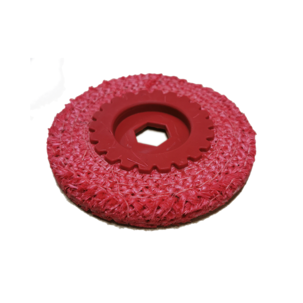Color (Red) The red color typically indicates that the sisal fibers have been impregnated or dip-treated with a hard binder (like a resin or glue) to increase their stiffness, aggressiveness (rate of cut), and durability. This makes the wheel firmer and more effective for initial cutting.