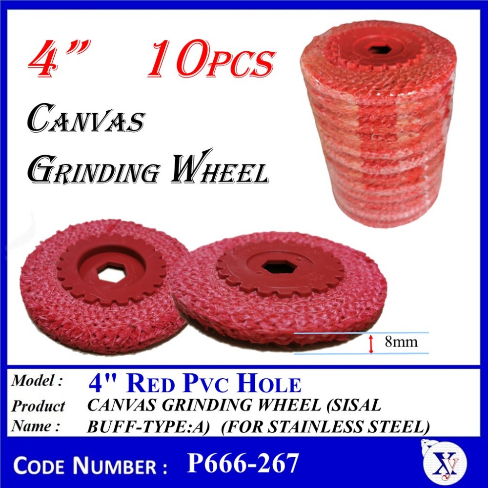Here are the details for the CANVAS GRINDING WHEEL RED SISAL BUFF POLISHING WHEEL (4" RED PVC HOLE):