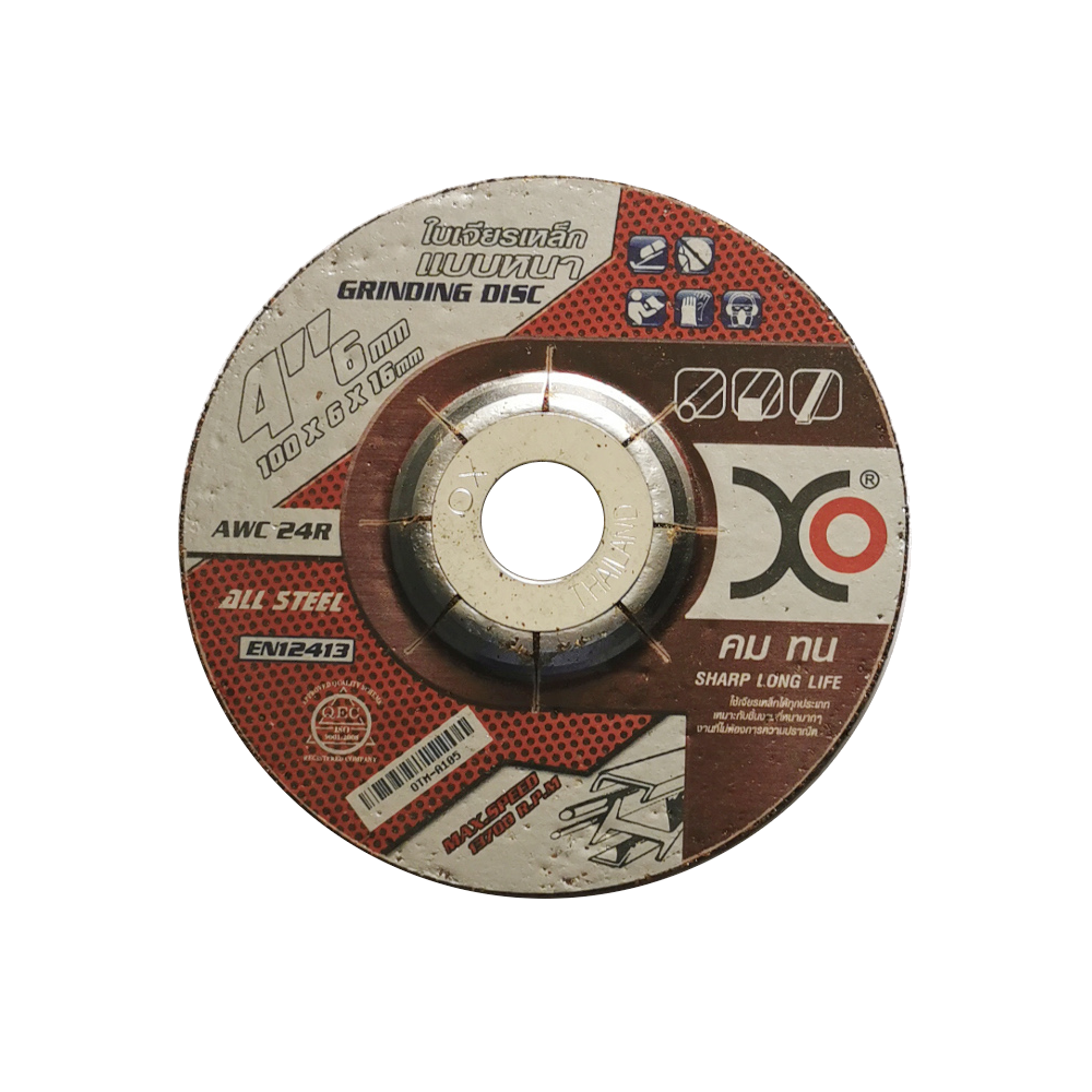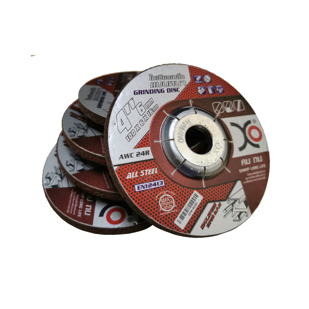 The OTM-A105 (RED) and OTM-G105 (GREEN) are 4-inch grinding discs from the brand XO, manufactured in Thailand. They are designed for use with angle grinders and are a common choice for metalworking professionals and DIY enthusiasts in the region.