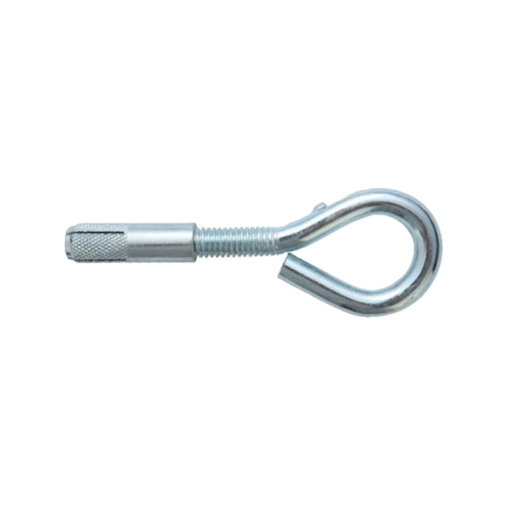 Fastening: The eye bolt hook has a threaded end that screws directly into the set drop-in anchor. This allows for removal and re-attachment of the hook if necessary.